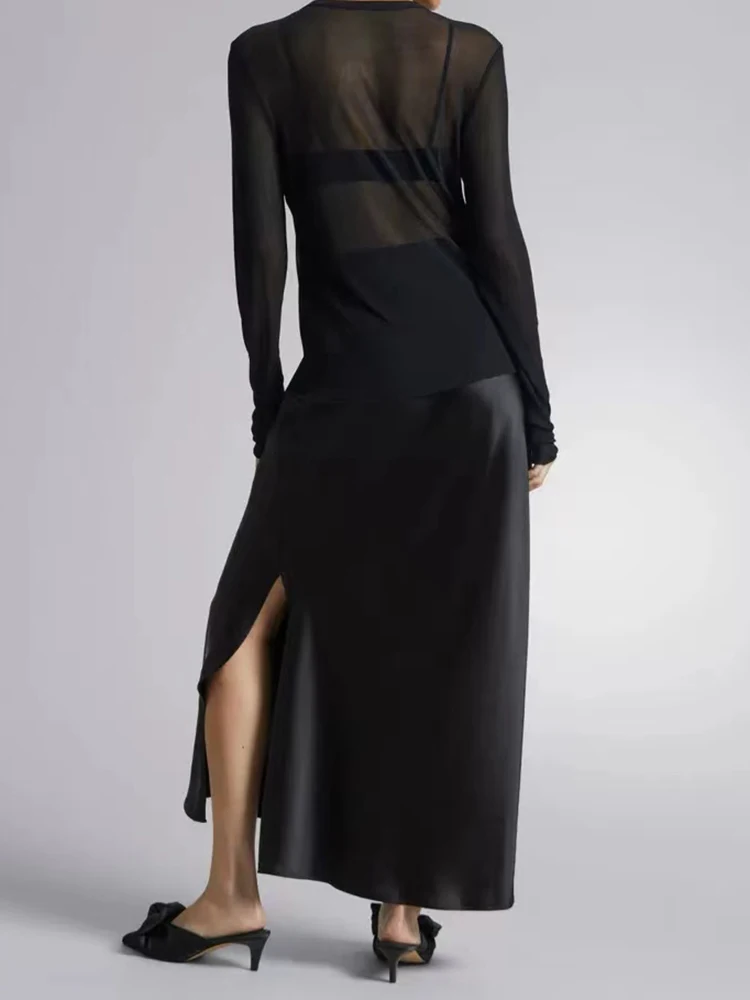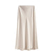 Silk Satin Skirts for Women 2024 Summer Casual Style A-line Solid Color Elastic High Waist Side Slit Champagne Skirt