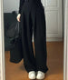 Simple Black High Waist Female Wide Leg Pants Full Length Casual Straight Solid Color Women's Suit Pants American Style