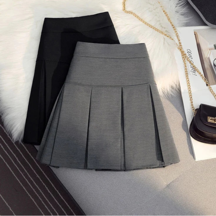 Skirts Women Solid Color Pleated Students Daily All-match Retro Sundress Maiden Teens Simple Patchwork Casual Summer Empire Chic