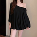 Solid Oversized T-shirt for Women's Casual Loose Top Fashion Bat Sleeves Simple Sexy Off Shoulder Korean Baggy T shirts Autumn