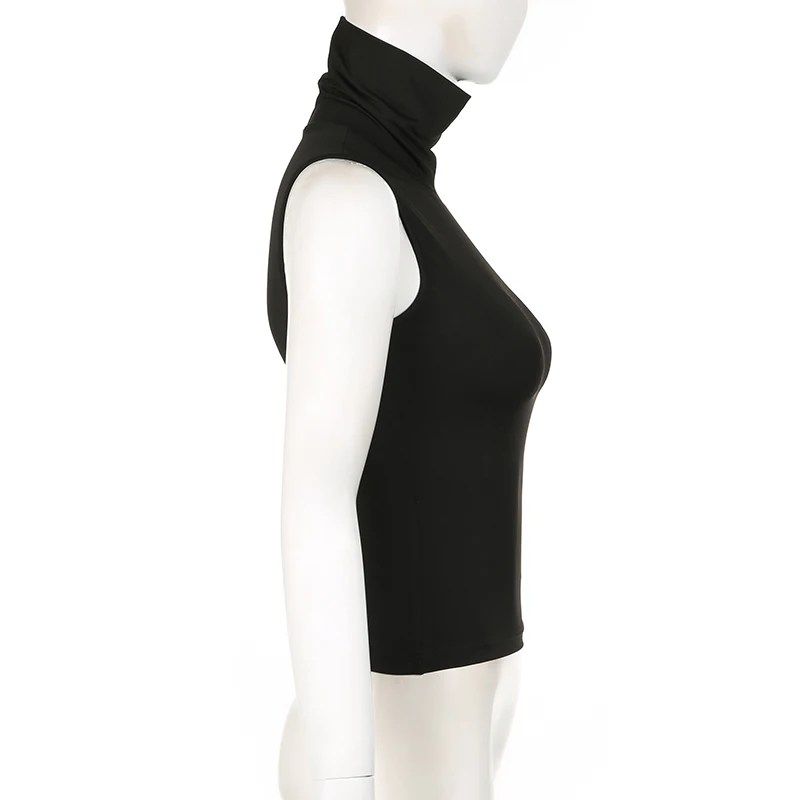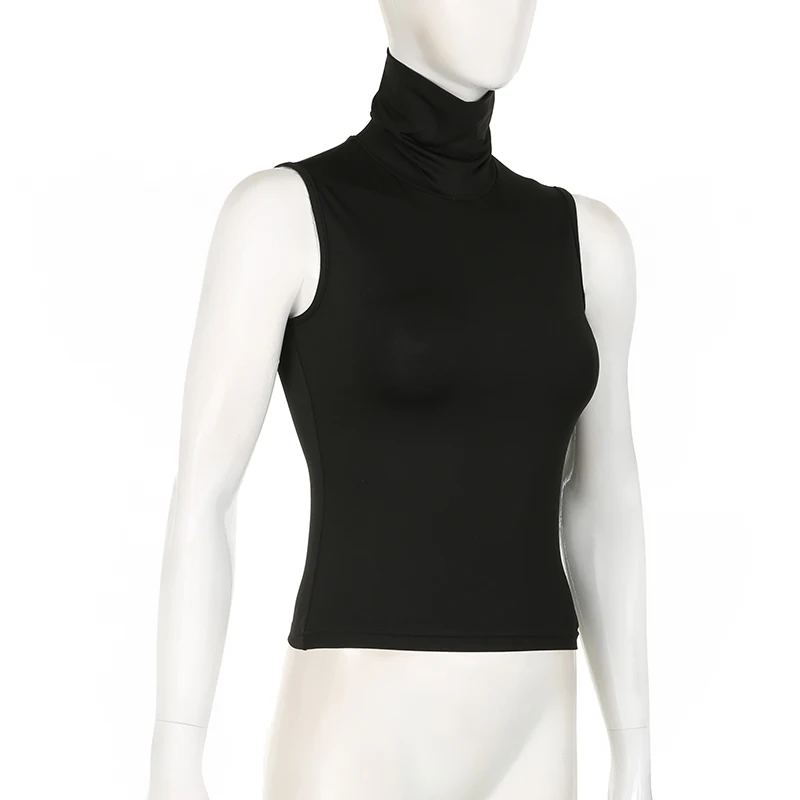 Solid Turtleneck Crop Top Women Sleeveless Skinny Basic Tank Tops y2k Streetwear Ladies Tees Summer Harajuku Vest Casual