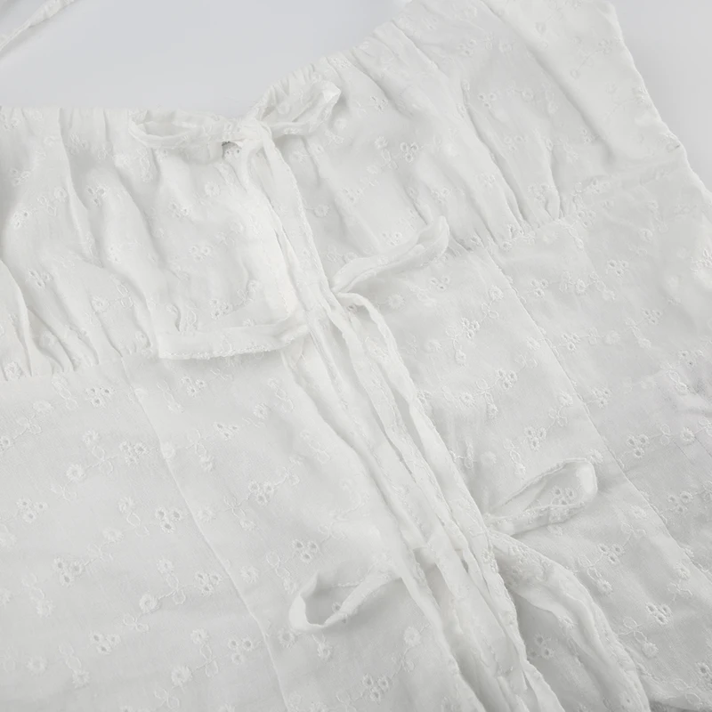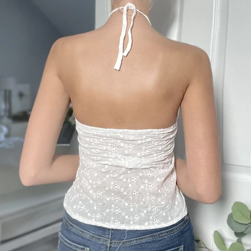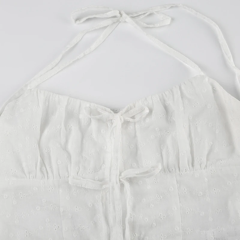 Solid White Bandage Bow Camis Sexy Split Sleeveless Halter Crop Top Women Summer Party Clubwear Y2k Vintage Tees Grunge