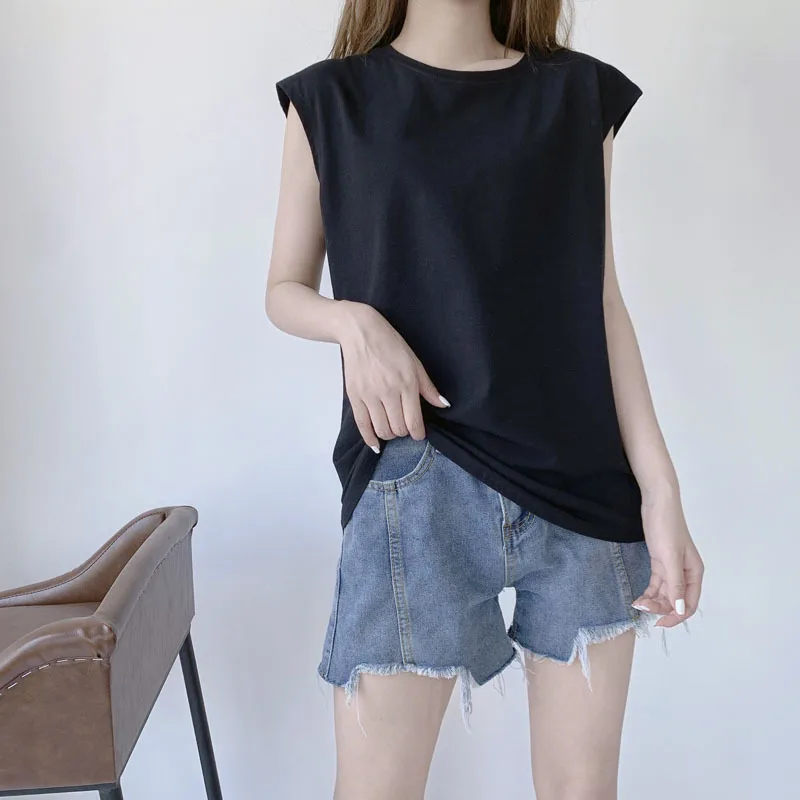 Solid Women T Shirt Sleeveless O Neck Loose Women Tshirt Ladies Fashion Tee Shirt Tops Clothes