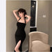 Split Dress Women's Summer New Black Halter Top Dress