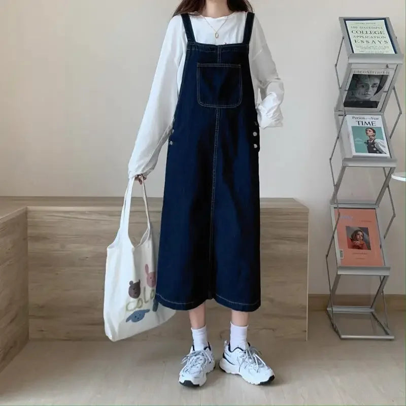 Spring Summer Denim Overall Dress Women Casual Sleeveless Jeans Dresses Fashion Solid Split Loose Spaghetti Strap Dresses Girls