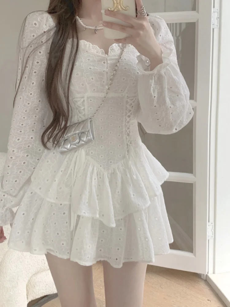 Spring Vintage Fairy Dress Women Sexy Korean Fashion Design Y2k Dress Female Kawaii V-neck Slim Elegant Mini Party Dresses