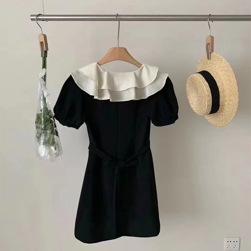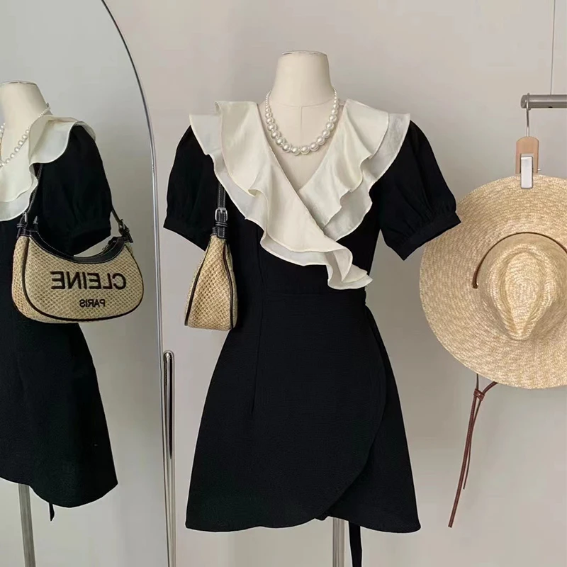 Summer Midi Tunic Dress For Women 2024 Design French Fashion Elegant Ruffles A-line Frocks Short Sleeve Banquet Evening Party
