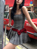 DRESS TO IMPRESS Summer Sexy Striped Bow Slim Party Dress Women Y2k Sleeveless Streetwear Vintage Dress Fashion Chic Retro Pleated Clothing New