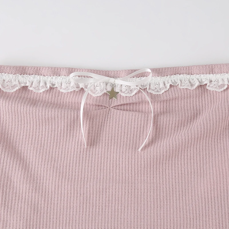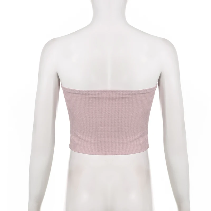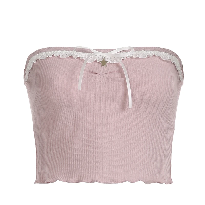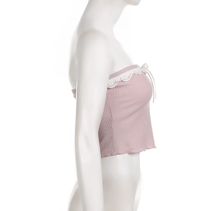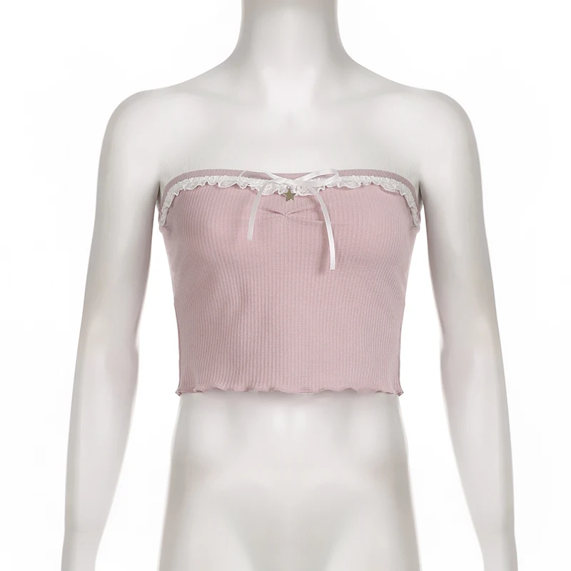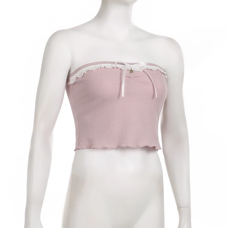 Sweet Off Shoulder Crop Top Kawaii Strapless Casual Pink Tube Tops Vintage Bow Stitched Sleeveless Vest Women Y2k Summer