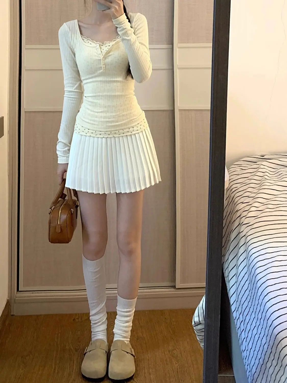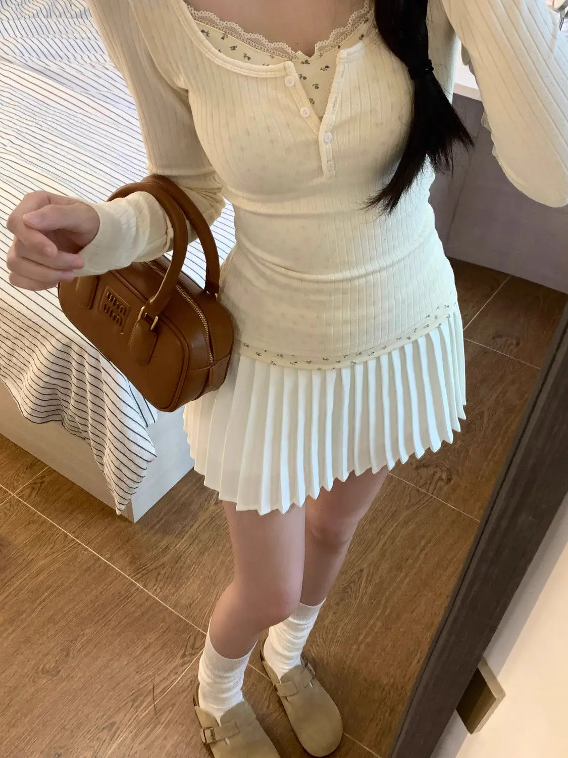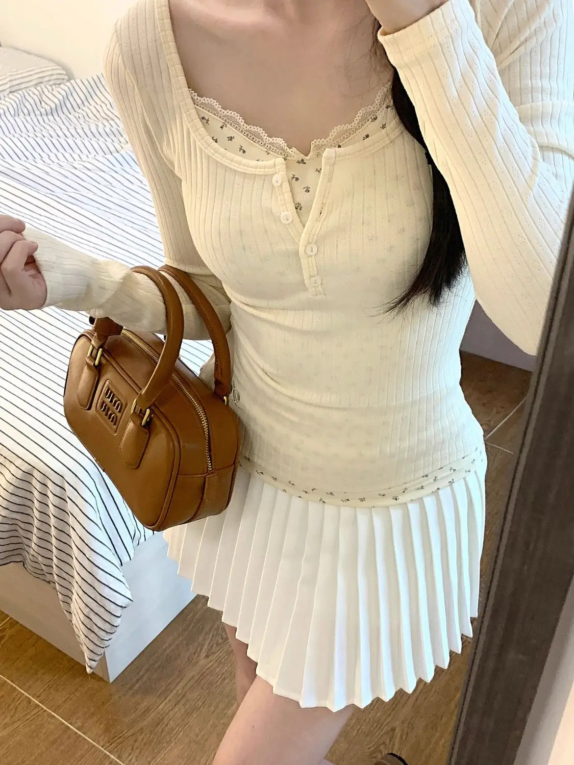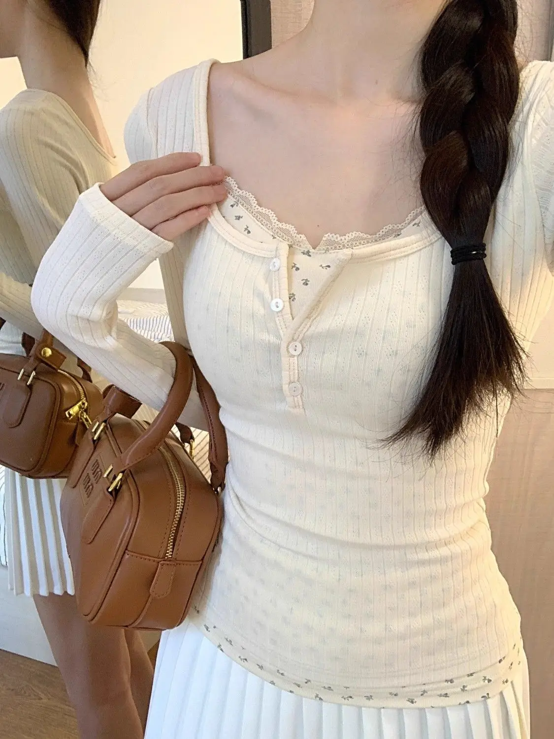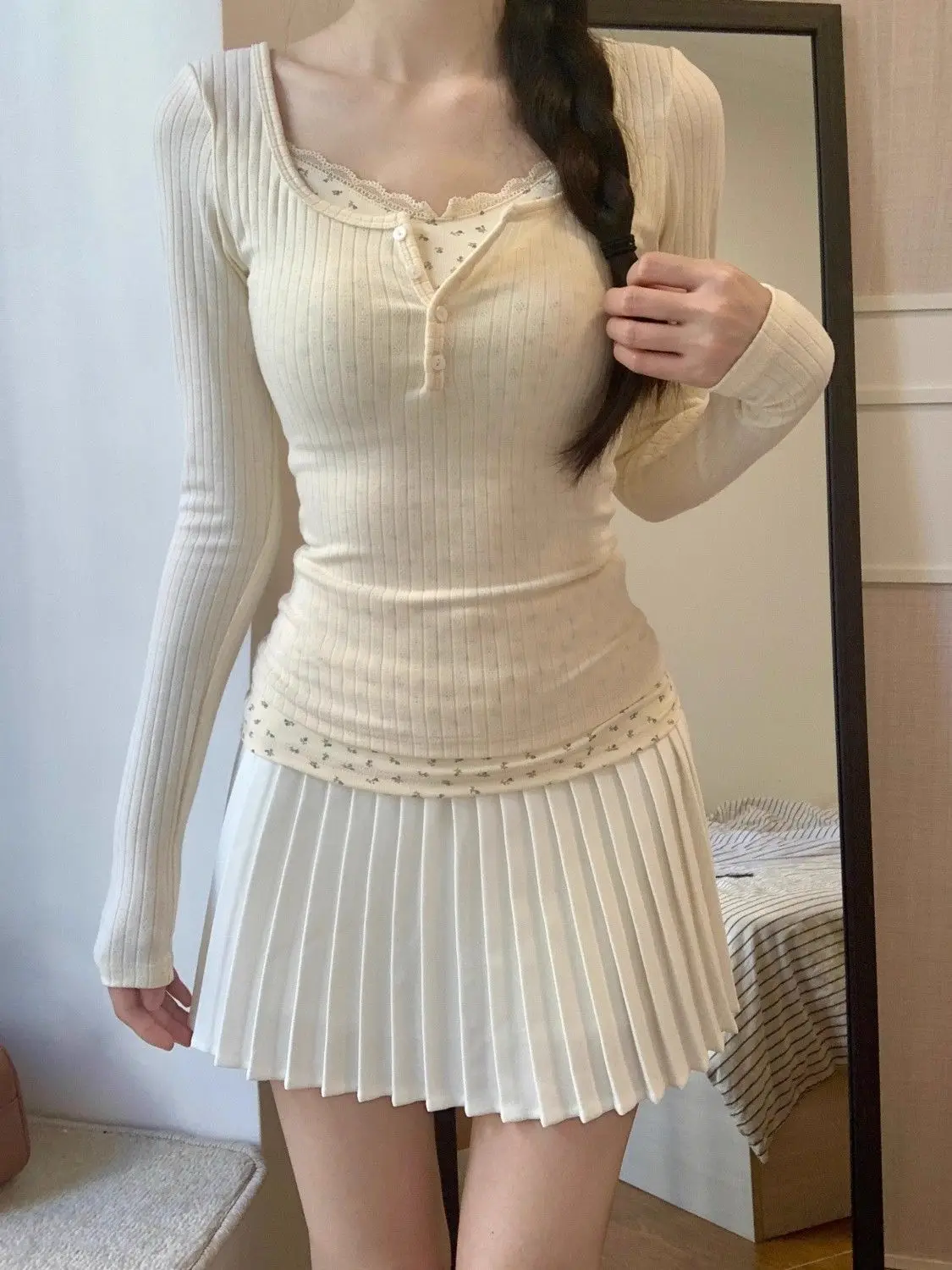 T-shirts Women Floral Fake Two Pieces Korean Fashionable Designed All-match Hotsweet Y2k Tops High Street Basic Clothes Fairy