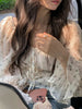 Vintage Chiffon Floral Blouse Women Casual Flare Sleeve Party Chic Tops Female Lace-up Design Korean Style Elegant Fairy Blouse