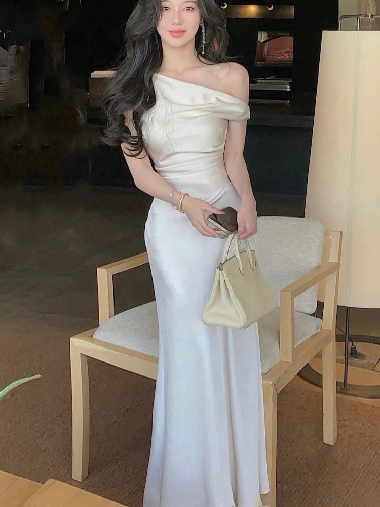 Vintage Elegant Evening Party Dresses Women Summer Solid Fashion Korean Y2k Design Dress Female Irregular Slim Casual Clothing