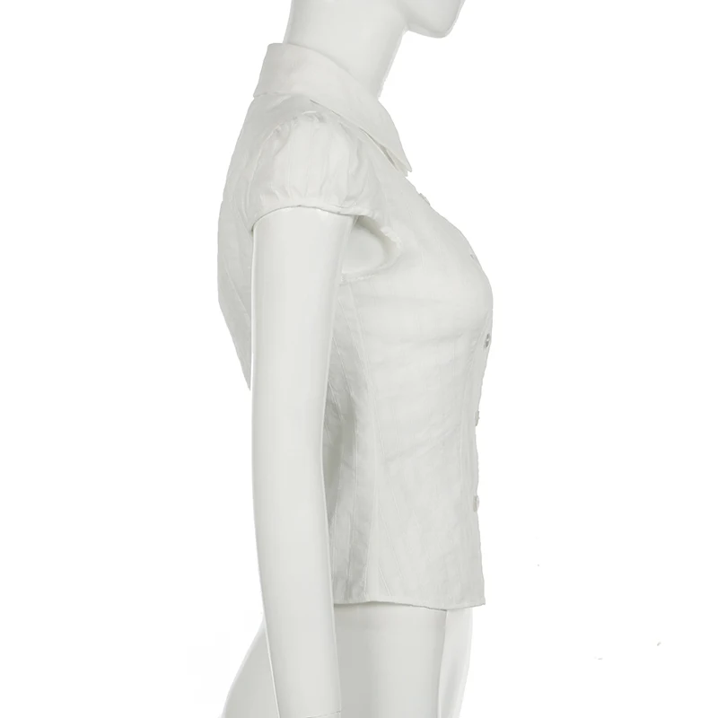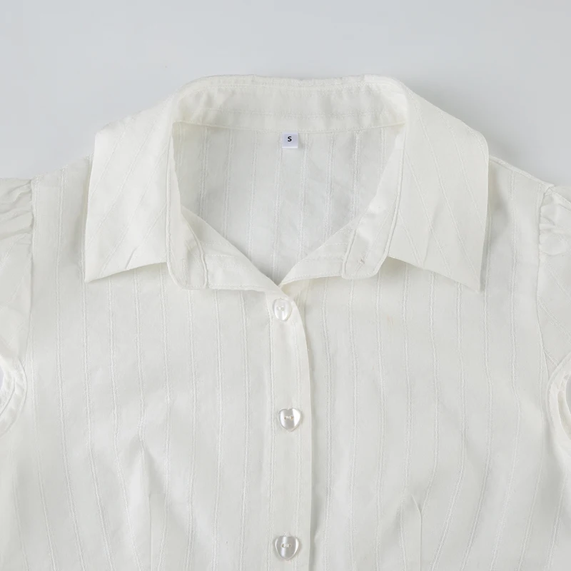 Vintage y2k Cropped Top Women Button Up Puff Sleeve White Blouse Korean Style T-shirt Casual Streetwear Tee 90s Harajuku