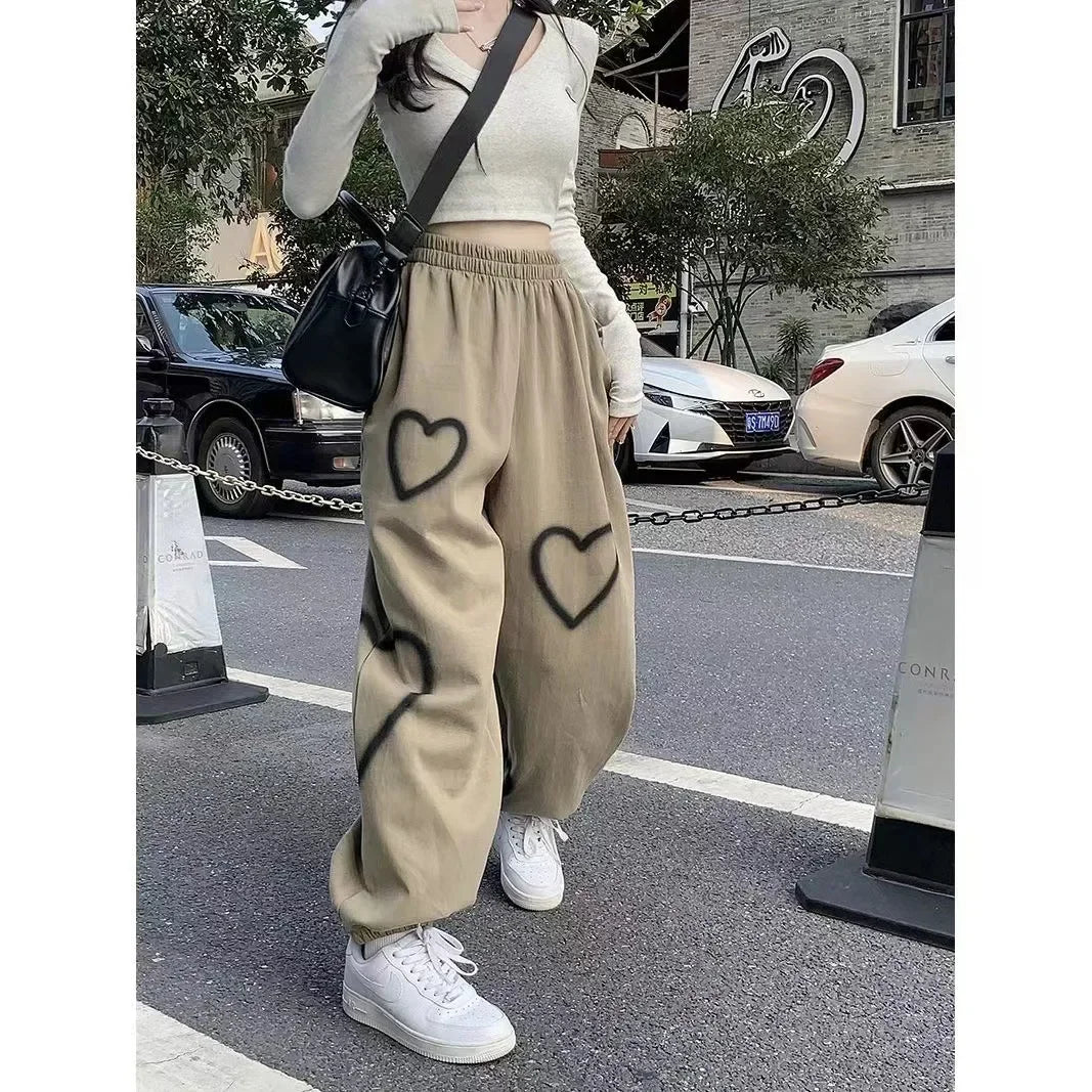 White Heart Leggings Sports Pants for Women Autumn New Loose Bf Lazy Casual Pants Simple Sport Pants