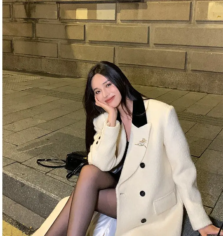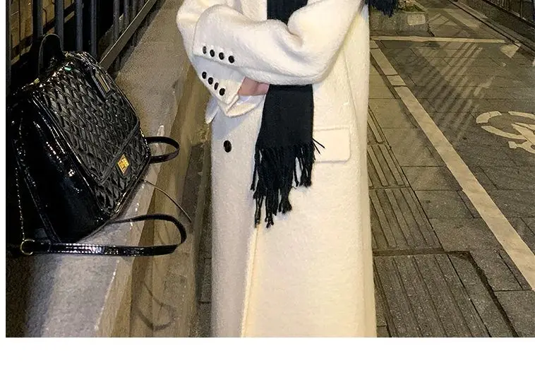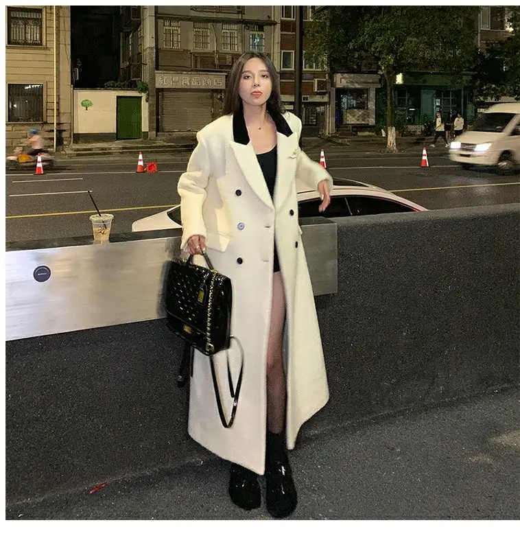 White Suit Coat Women Winter Jackets New Korean Fashion Loose Temperament Mid Length Thick Long Coats Autumn Clothing