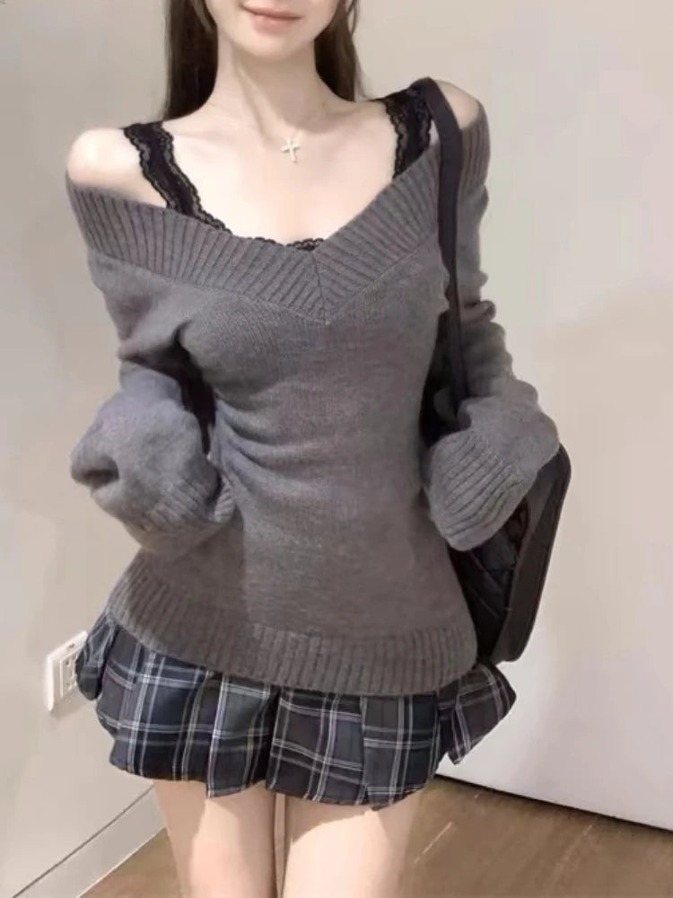Winter Korean College Style Vintage 3 Piece Set women Knit Sweater + Black Vest + Pleated Skirt New Aesthetic Fashion Retro