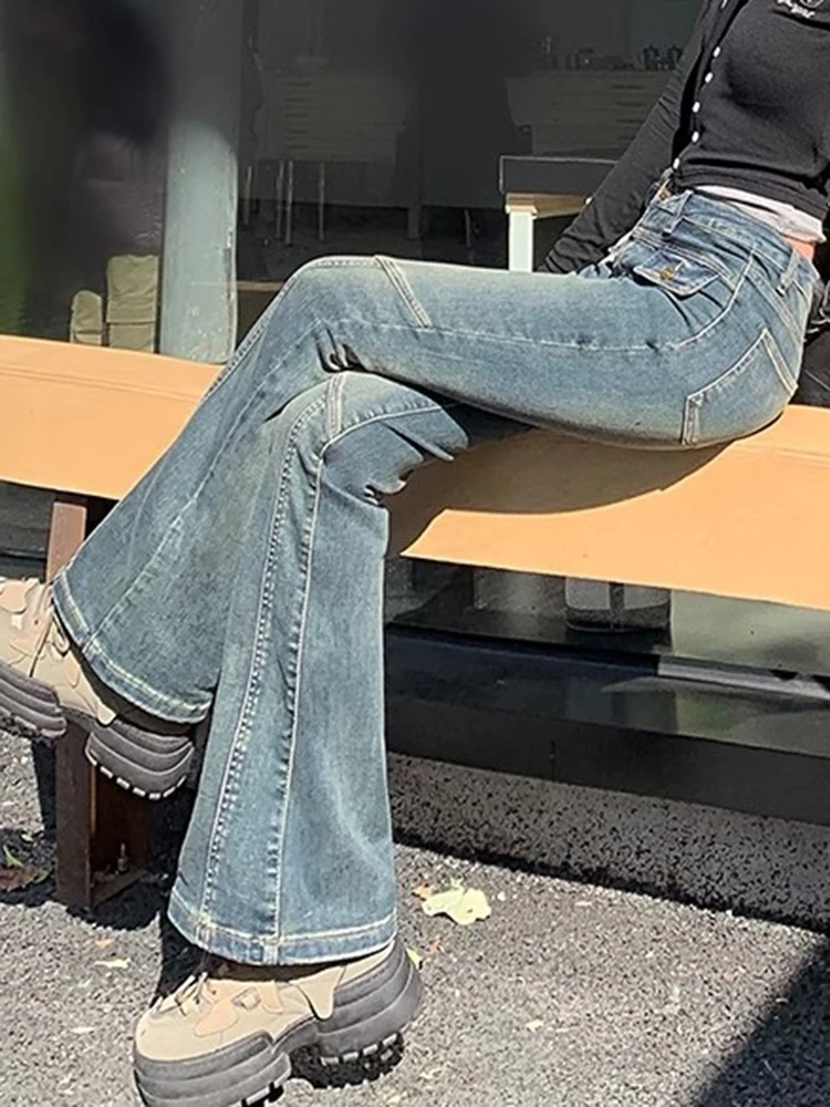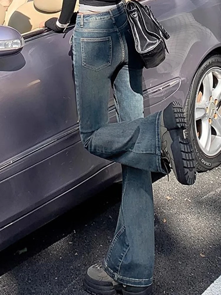 Woman New High Waist Fashion Oversized Flare Jeans Female Slim Fit Denim Bell Bottom Pants Female Retro Blue Black Gray Trousers