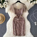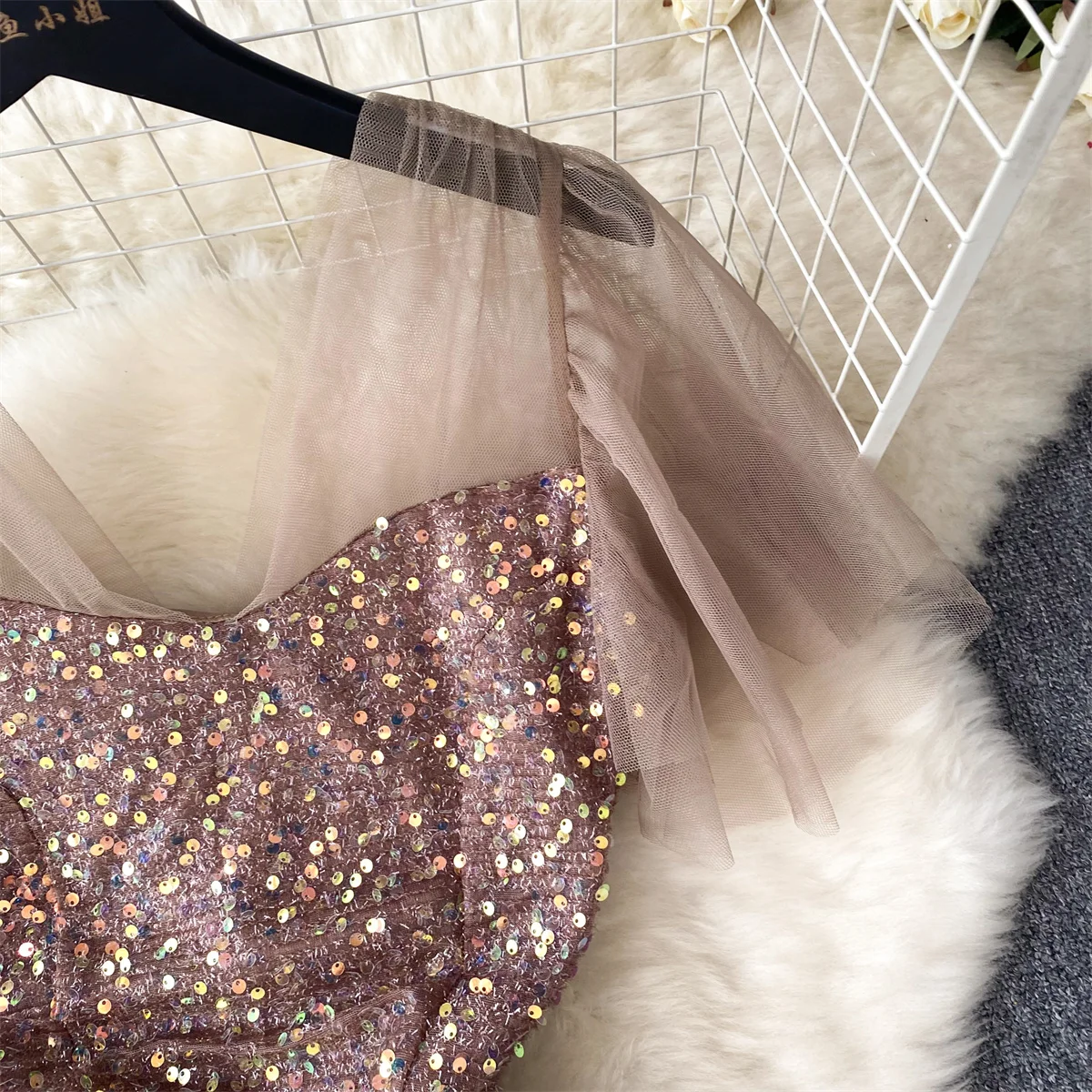 Women Chic Sequin Patchwork Slip Dress Sexy Backless Elegant Evening Party Robe Women Vintage Slim Split Ceremonial Dress