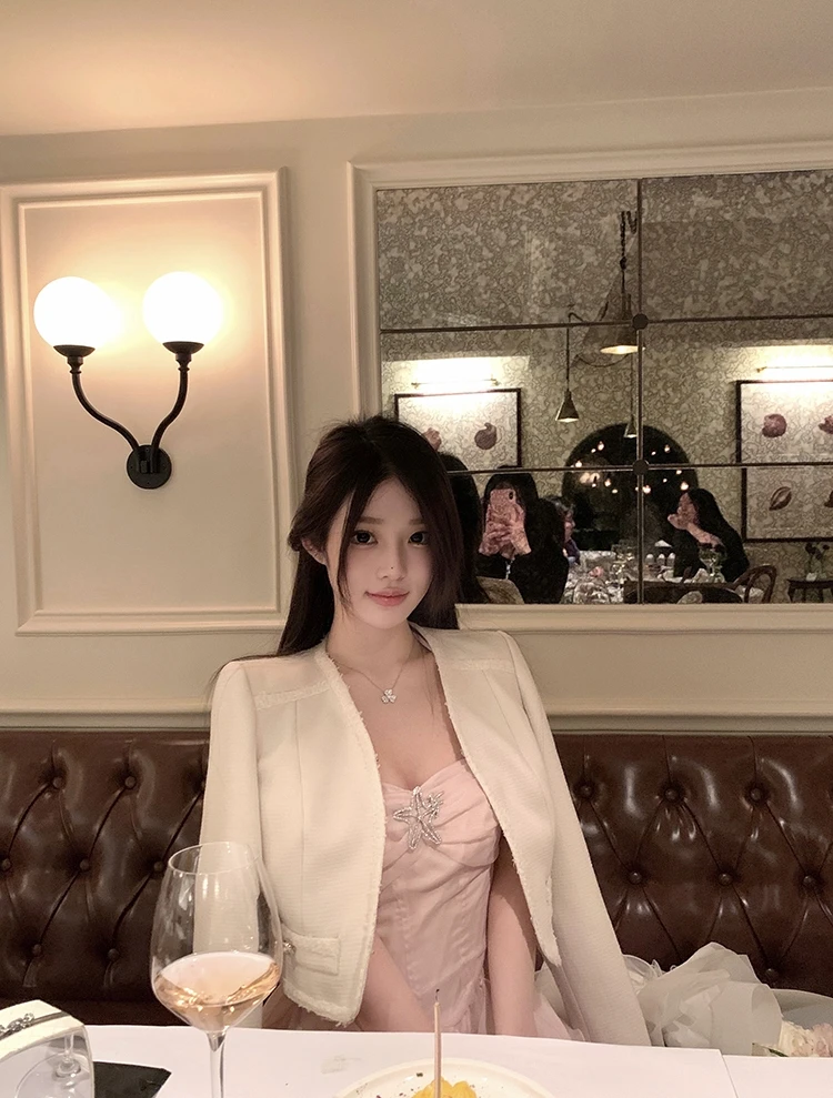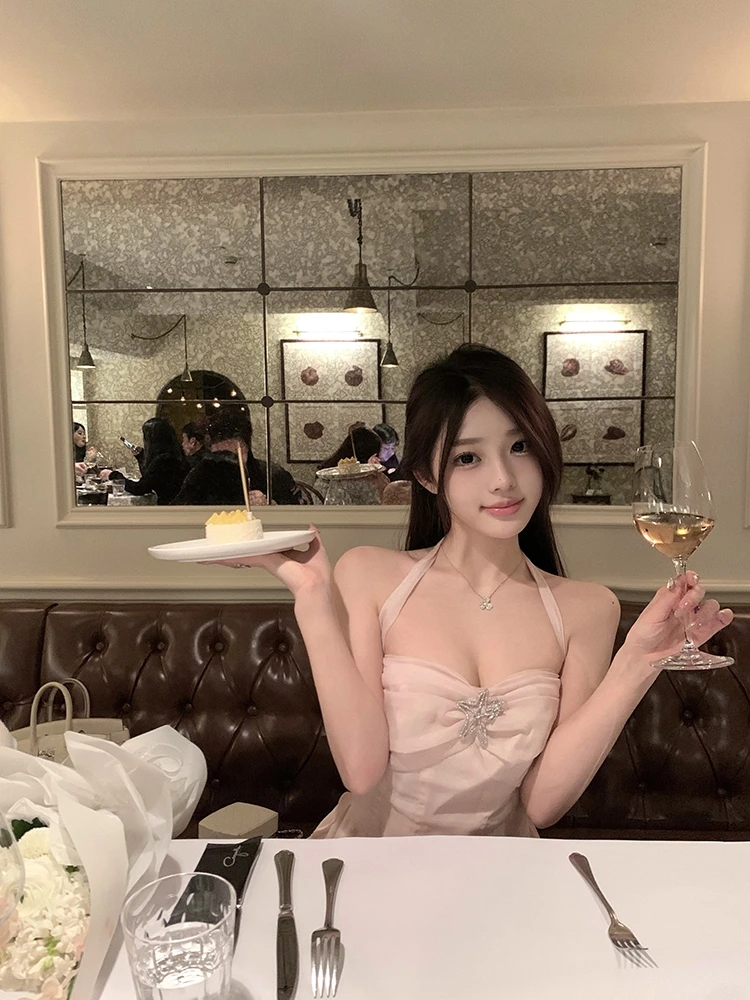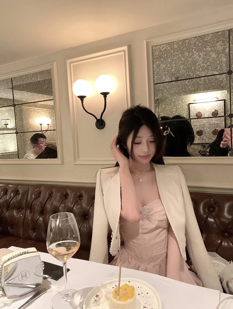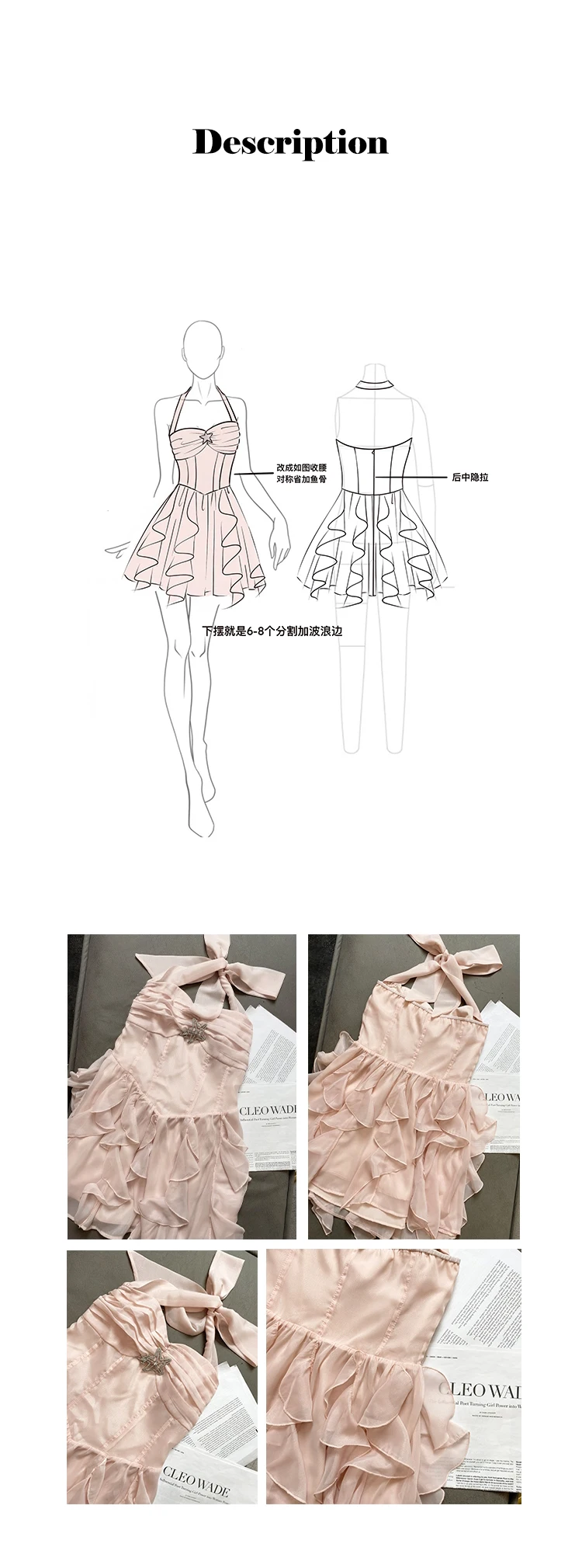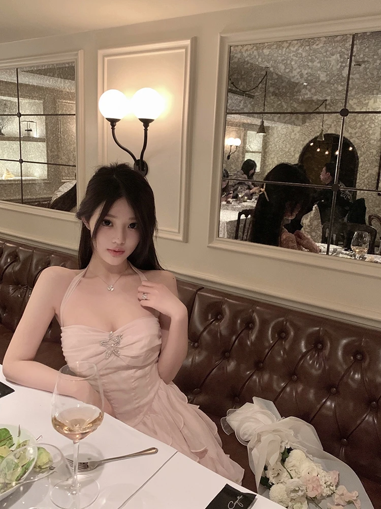 Women Elegant Mini Dress y2k Summer French Style Diamond Ruffles Pink Sexy Sweet Dresses Ladies Birthday Party Club Outfits