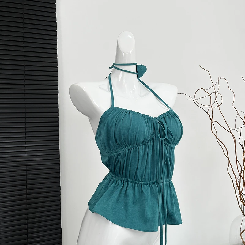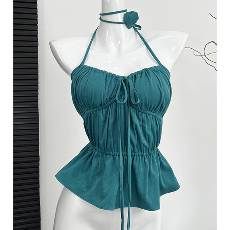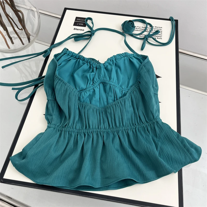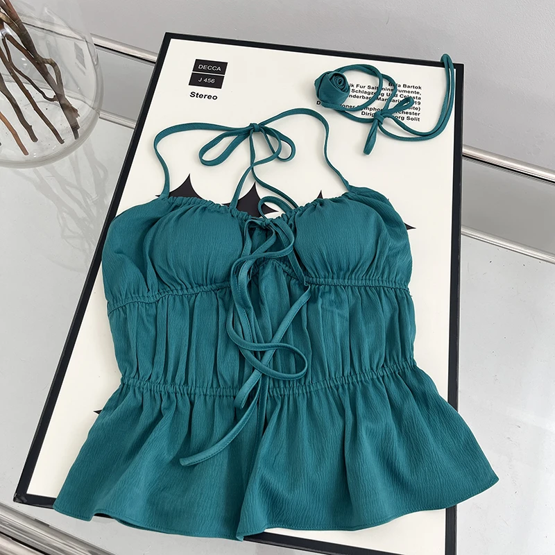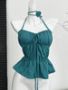 Women Green Halter Bandage Crop Top Vintage Y2k Summer Camisole Fashion Vest Streetwear Off Shoulder Beach Backless Sexy Clothes