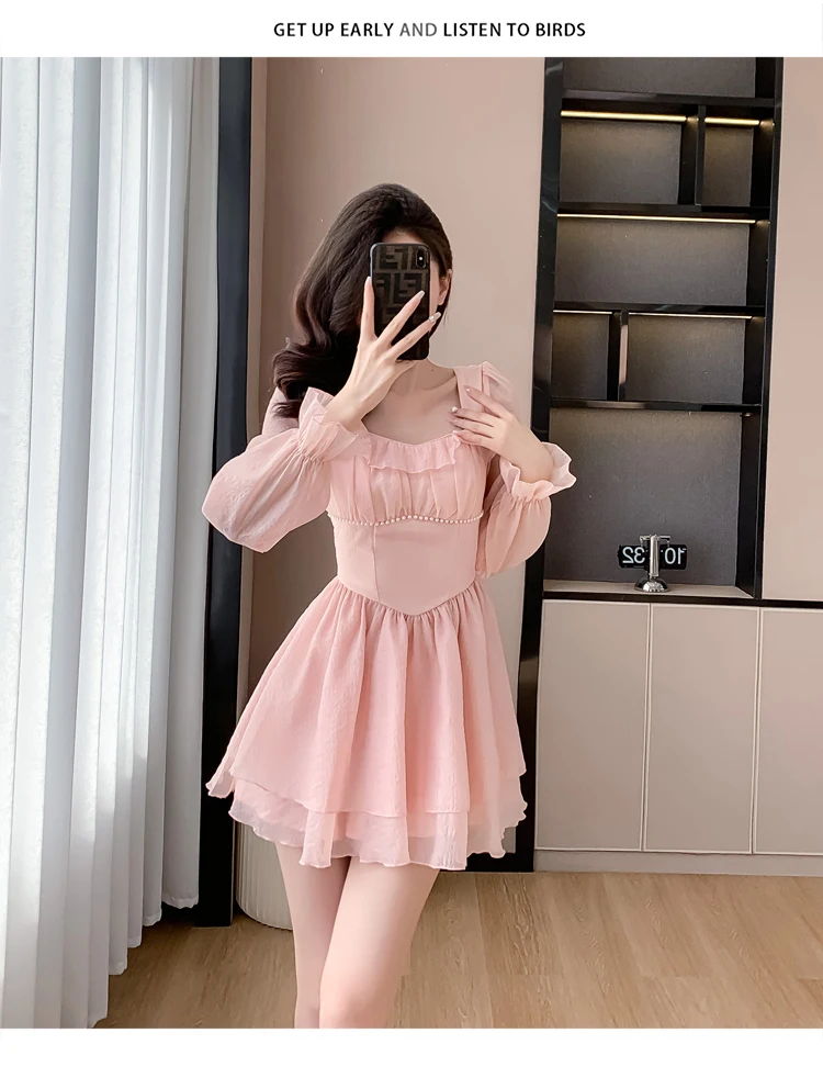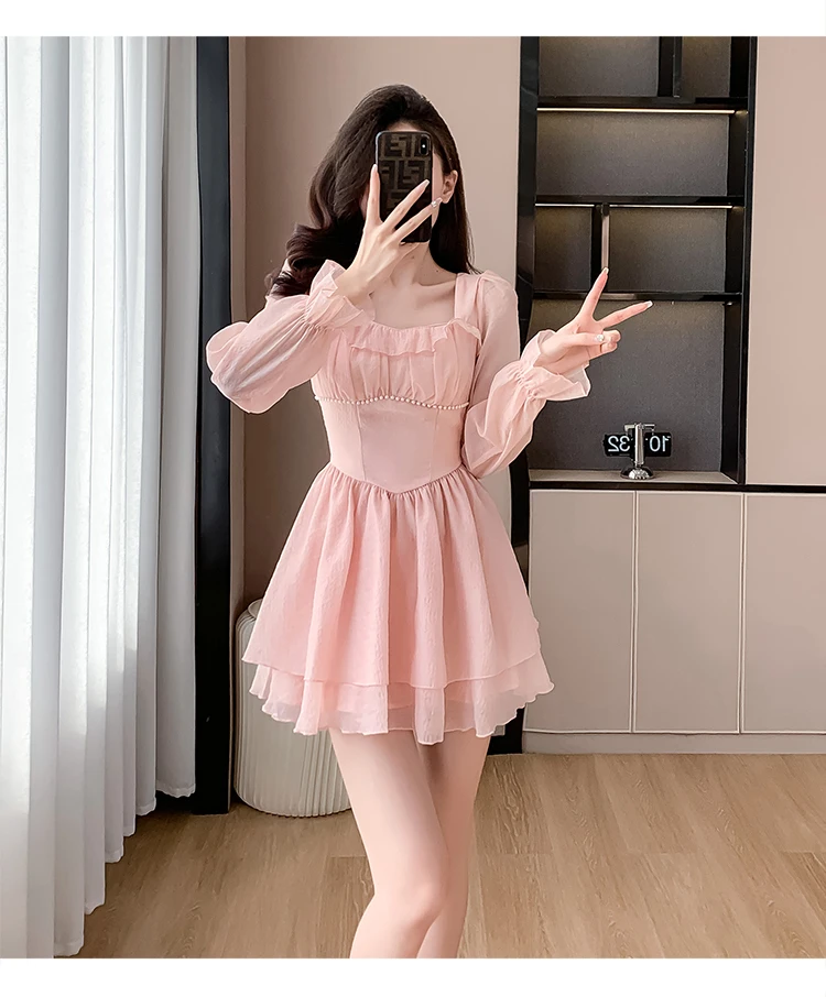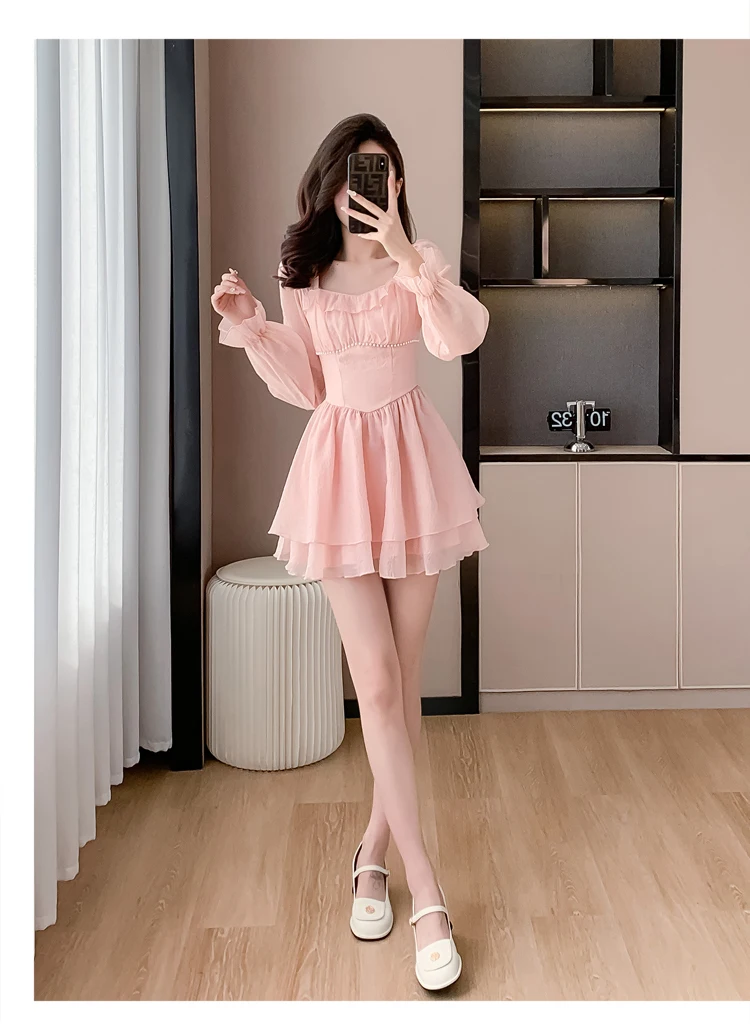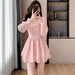 Women Pink Patchwork Chiffon Chic Ruffled Short Dress Spring Elegant Diamonds Kawaii Dress 2024 Korean Fashion Bodycon Vestidos