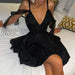 Women Shiny Party Dress, Solid Color Spaghetti Strap V-Neck Braces Skirt, Cocktail Dress for Ladies