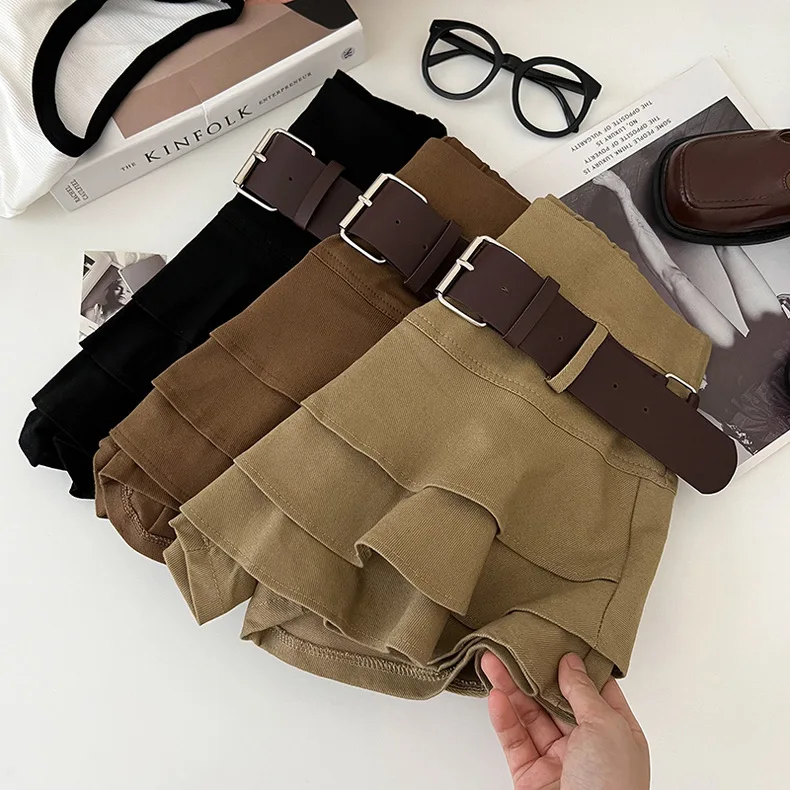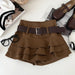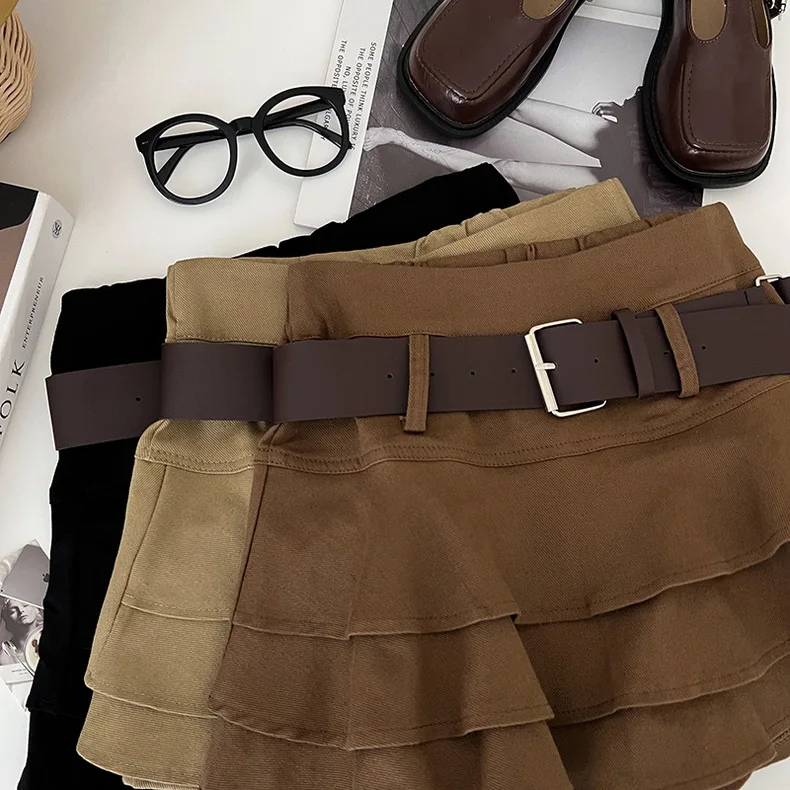 Women Tiered Ruffle Skirt with Belt Low Rise Denim Skirt Teengirl Miniskirt e-girl Y2K Aesthetic 90s Outfit