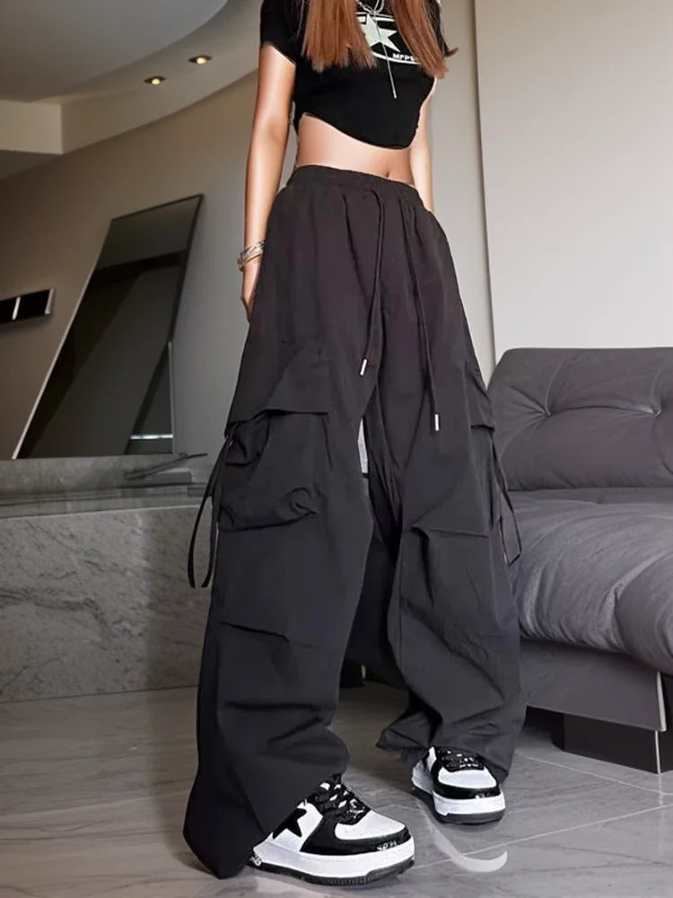 Women Y2K Cargo Pants High Waist Streetwear Hip Hop Trousers Female Big Pockets Casual Student Drawstring Baggy Sweatpants
