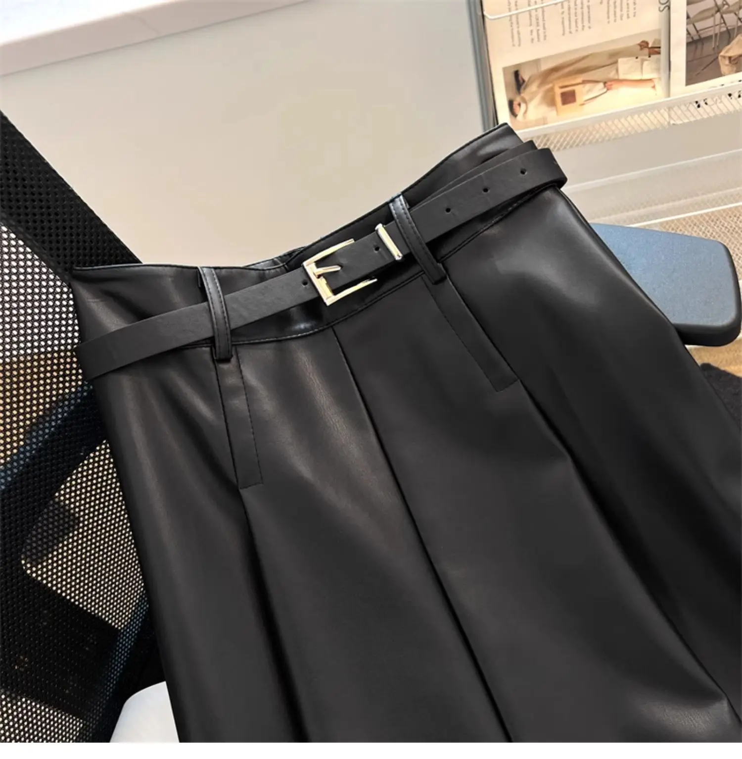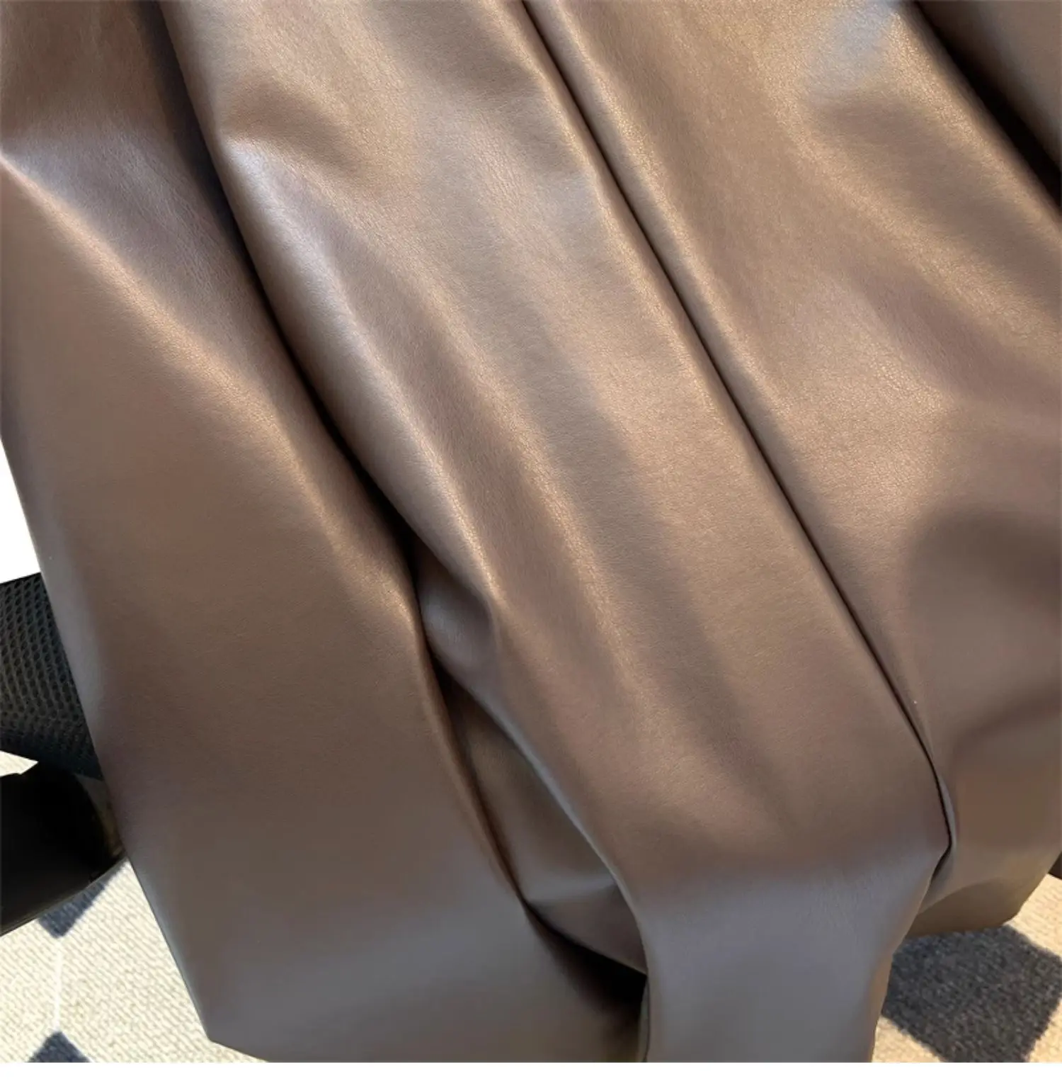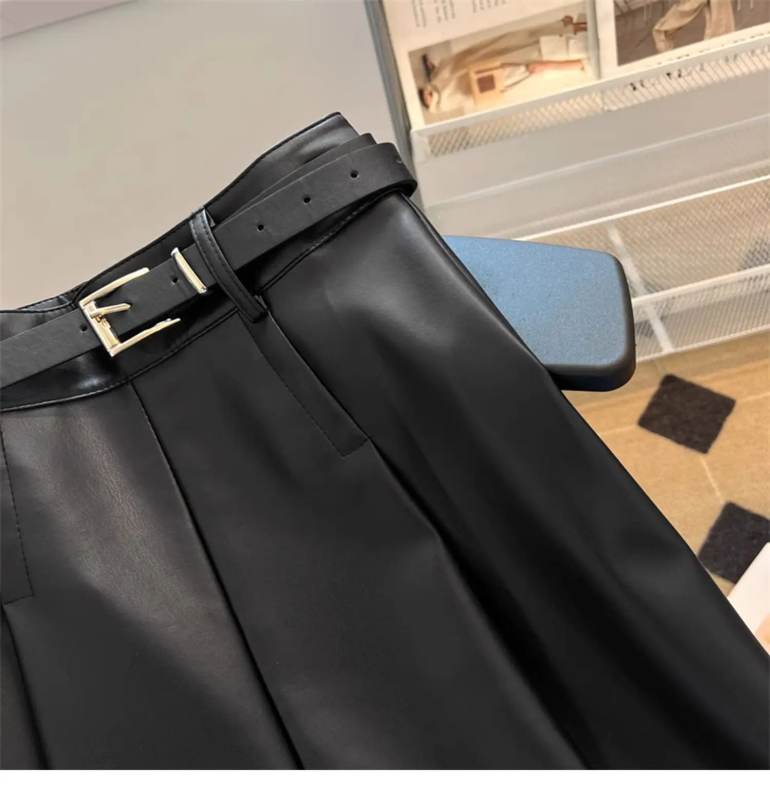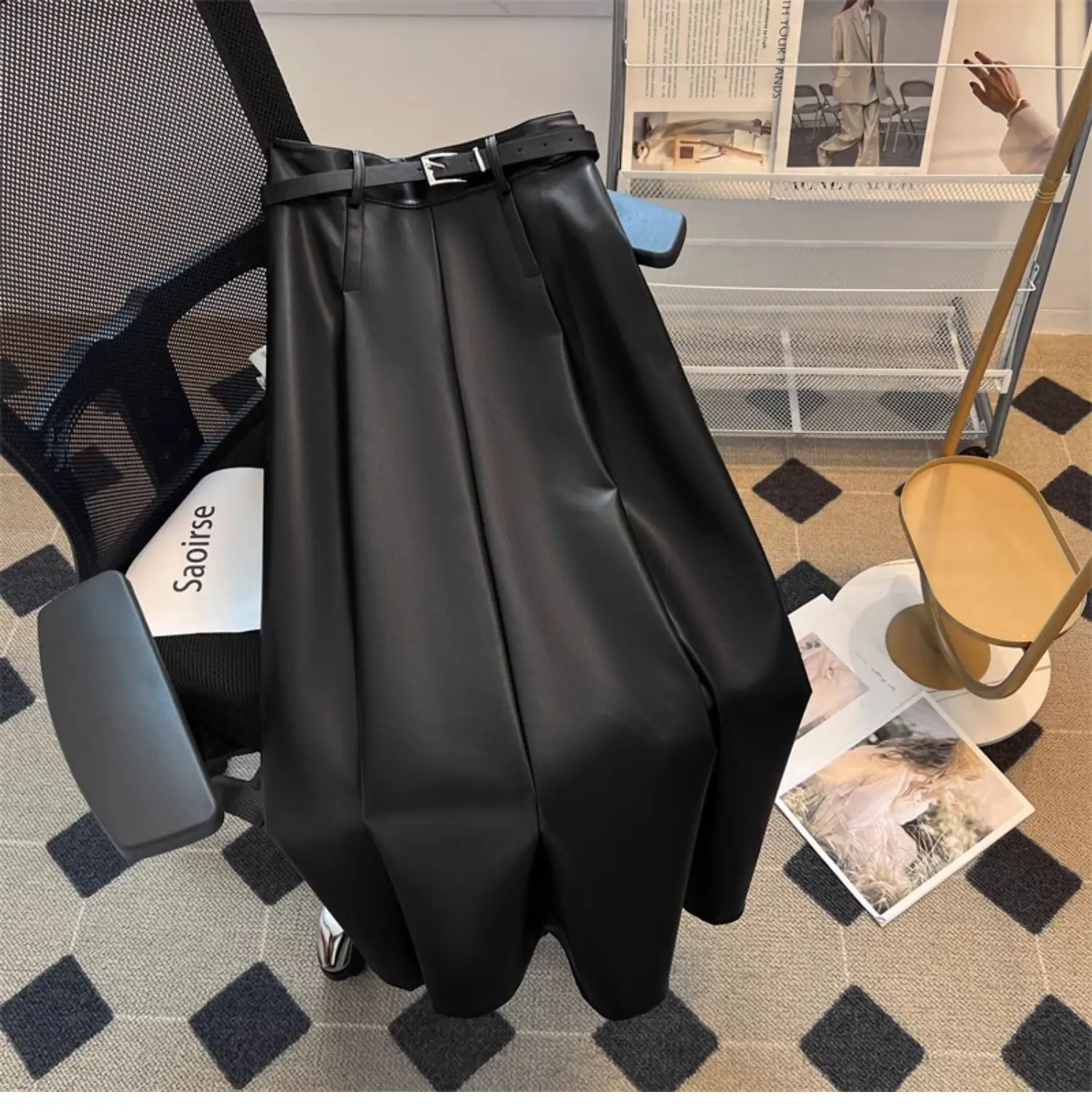Women's A-line Brown Pleated PU Skirt Vintage 90s Aesthetic Y2k Grey Long Skirt Harajuku Korean Skirts 2000s Clothes