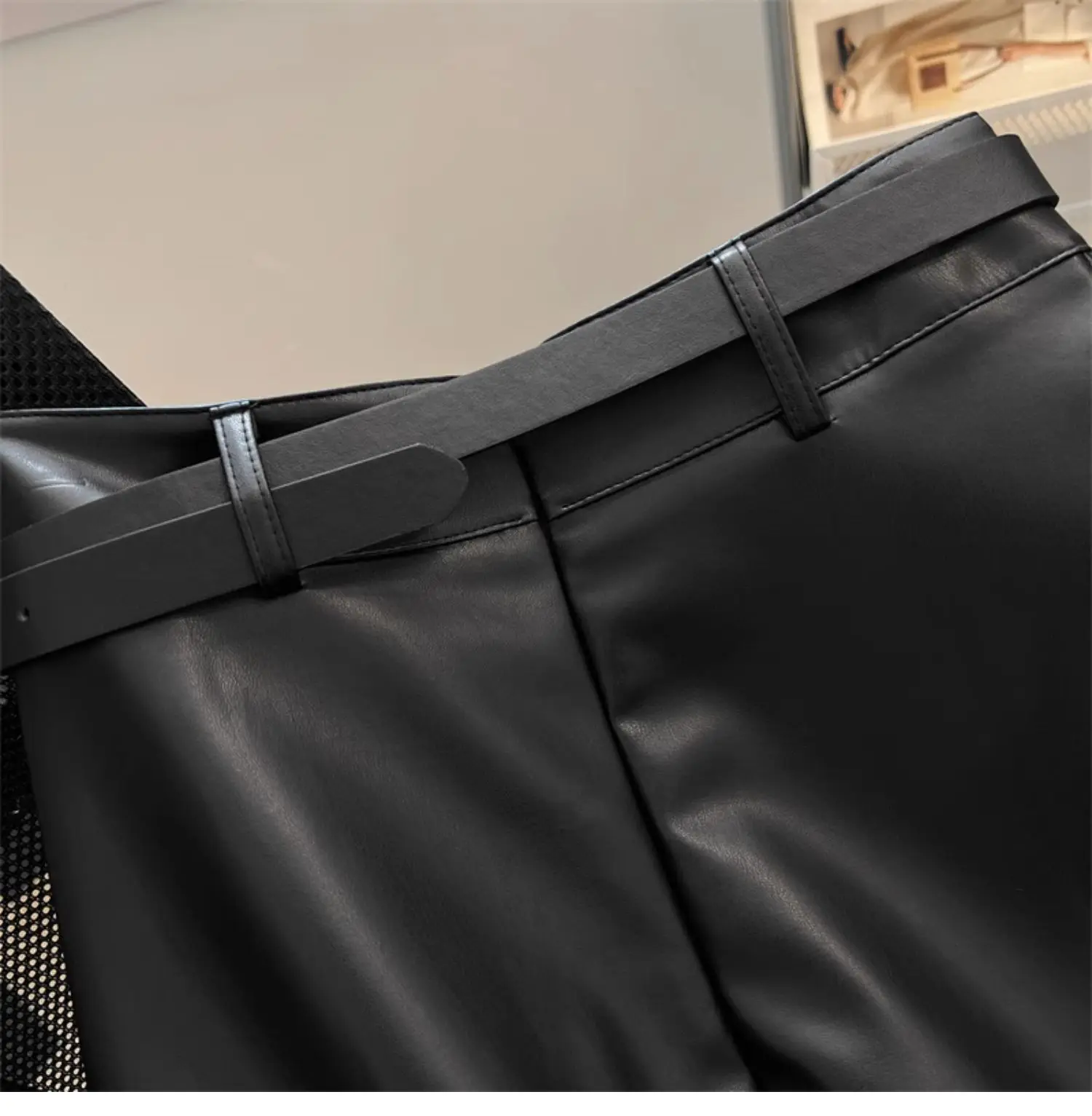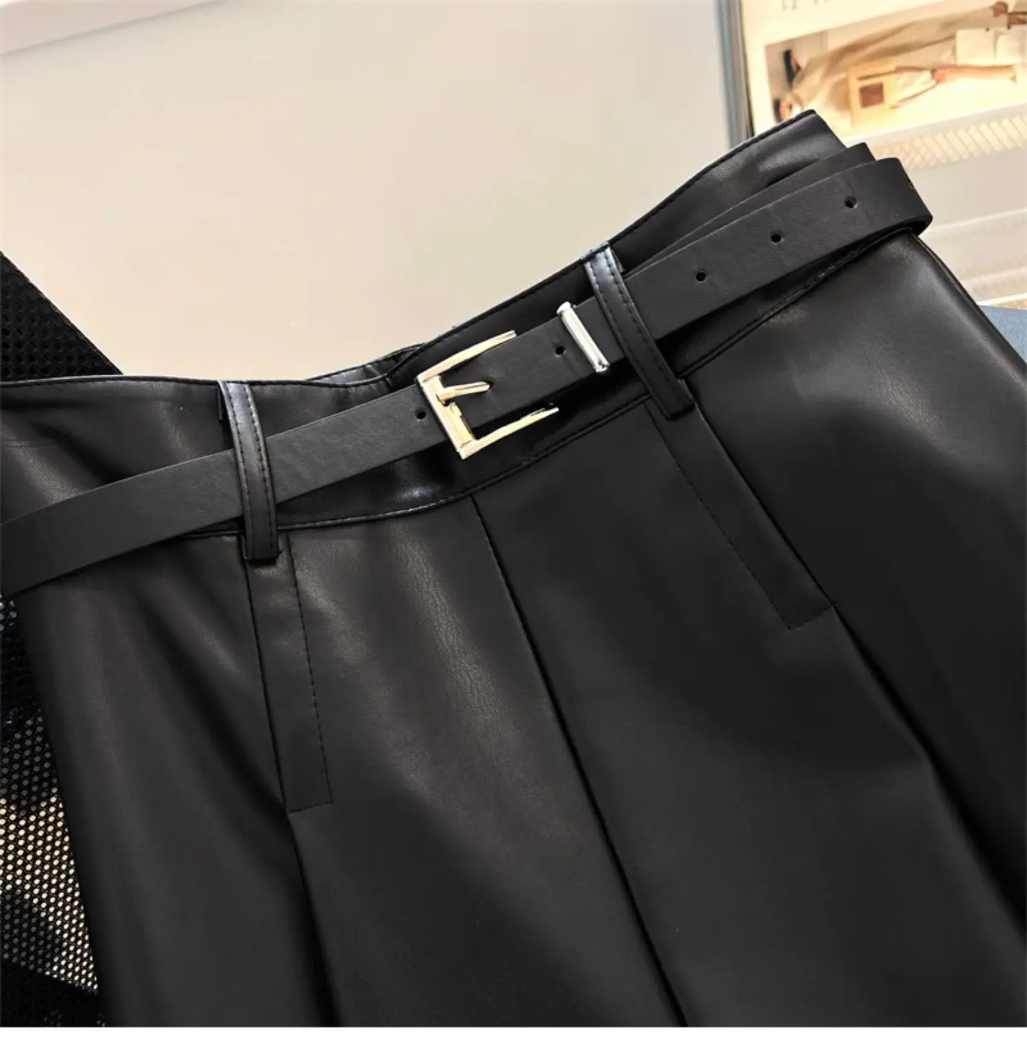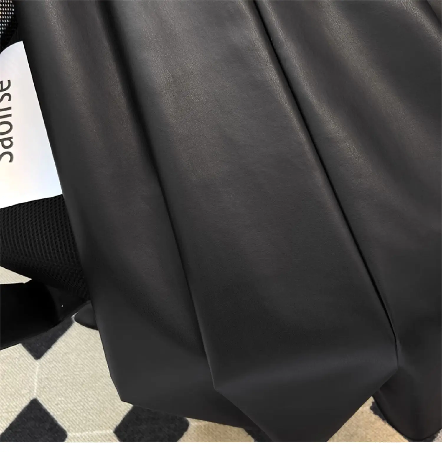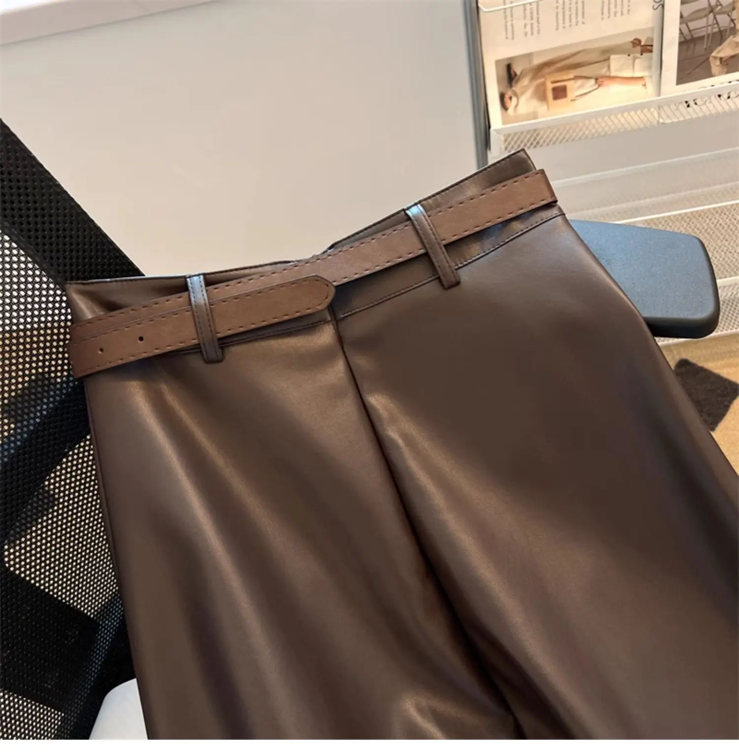 Women's A-line Brown Pleated PU Skirt Vintage 90s Aesthetic Y2k Grey Long Skirt Harajuku Korean Skirts 2000s Clothes