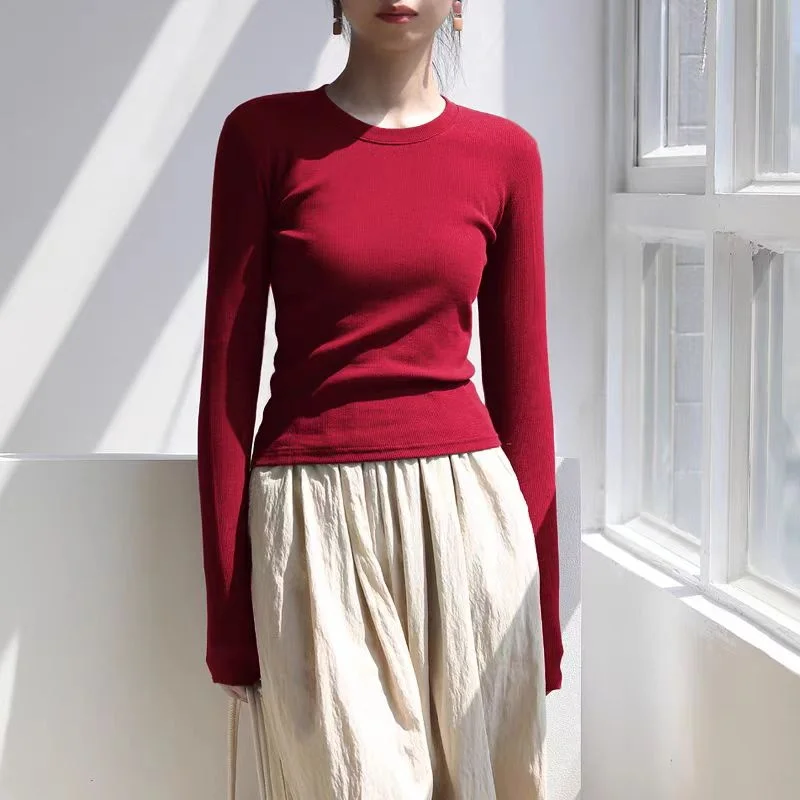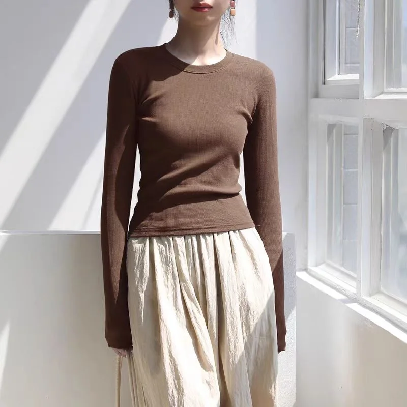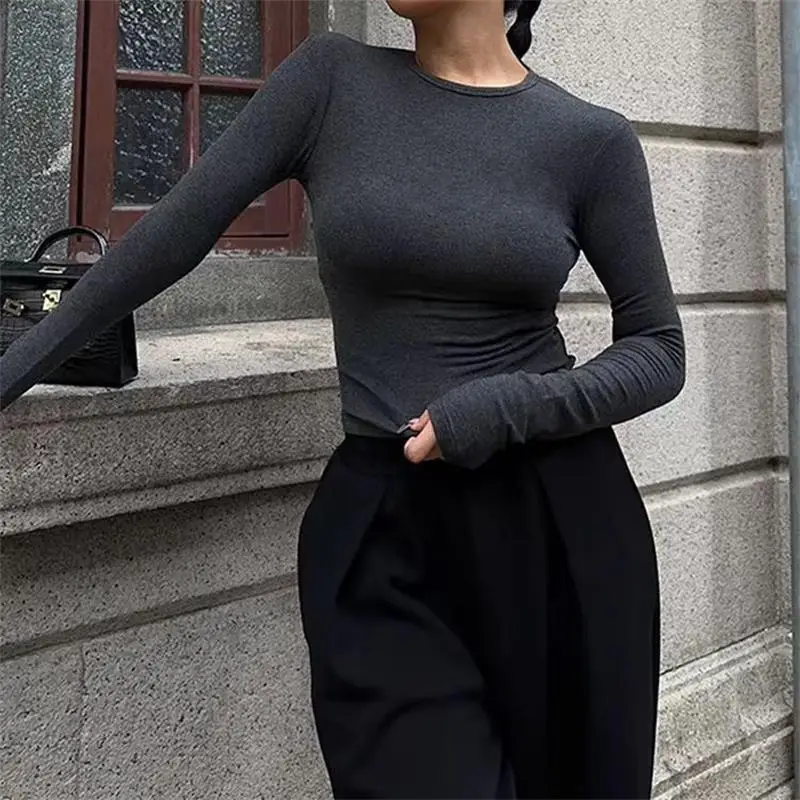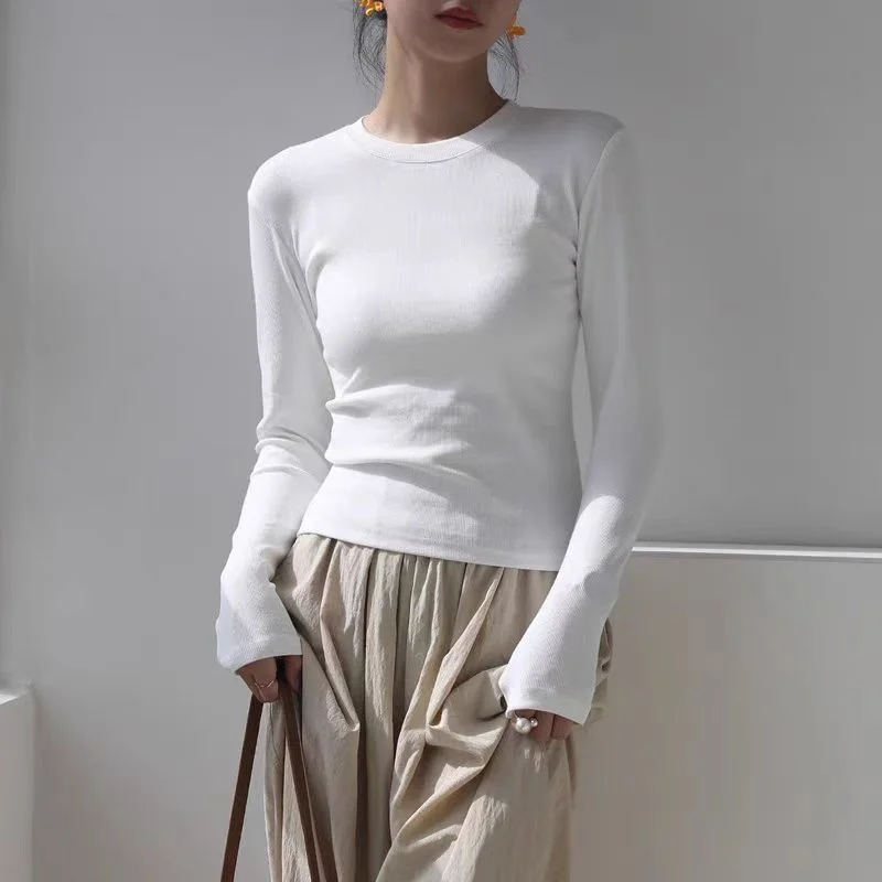 Women's Autumn and Winter Long Sleeve T-shirt Y2K Slim-fit Ladies Pullover Basic O Collar Fashion Casual Streetwear T-shirt