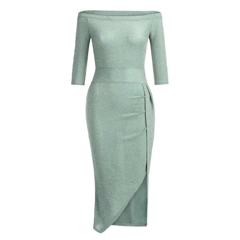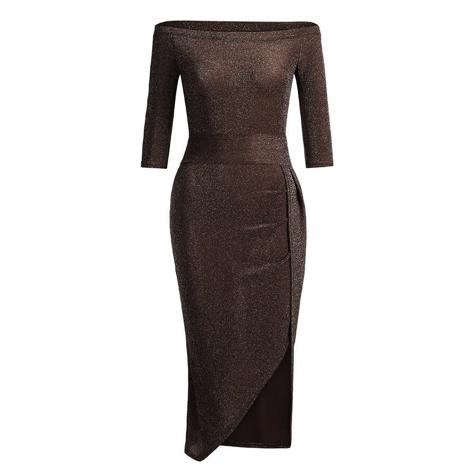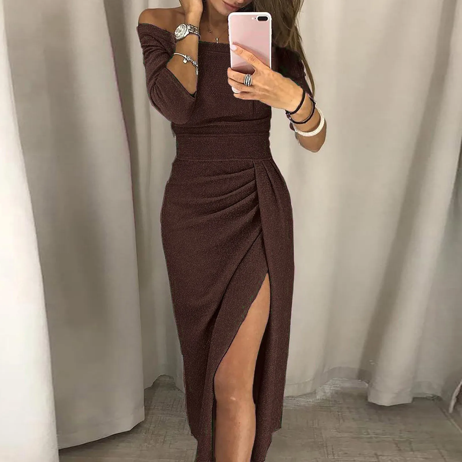 Women's Fashion Sexy Strapless High Slit Tight Dress Long Sleeve Dress