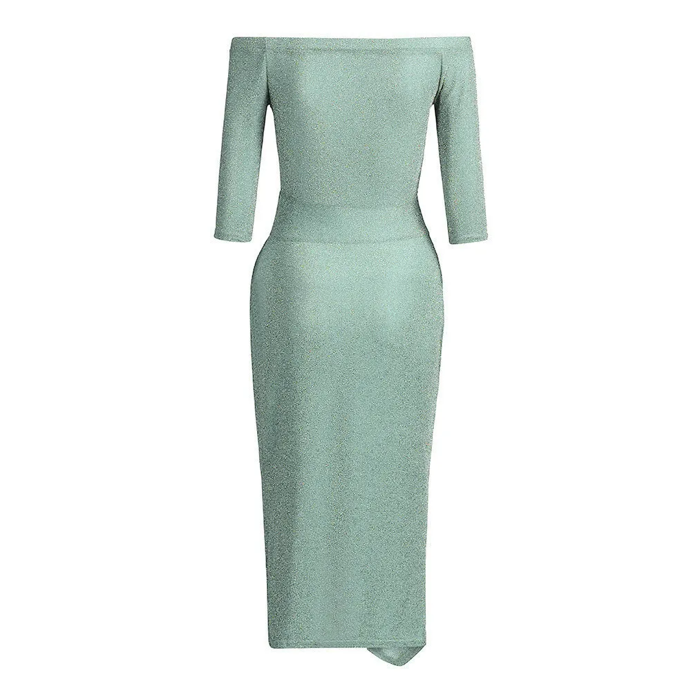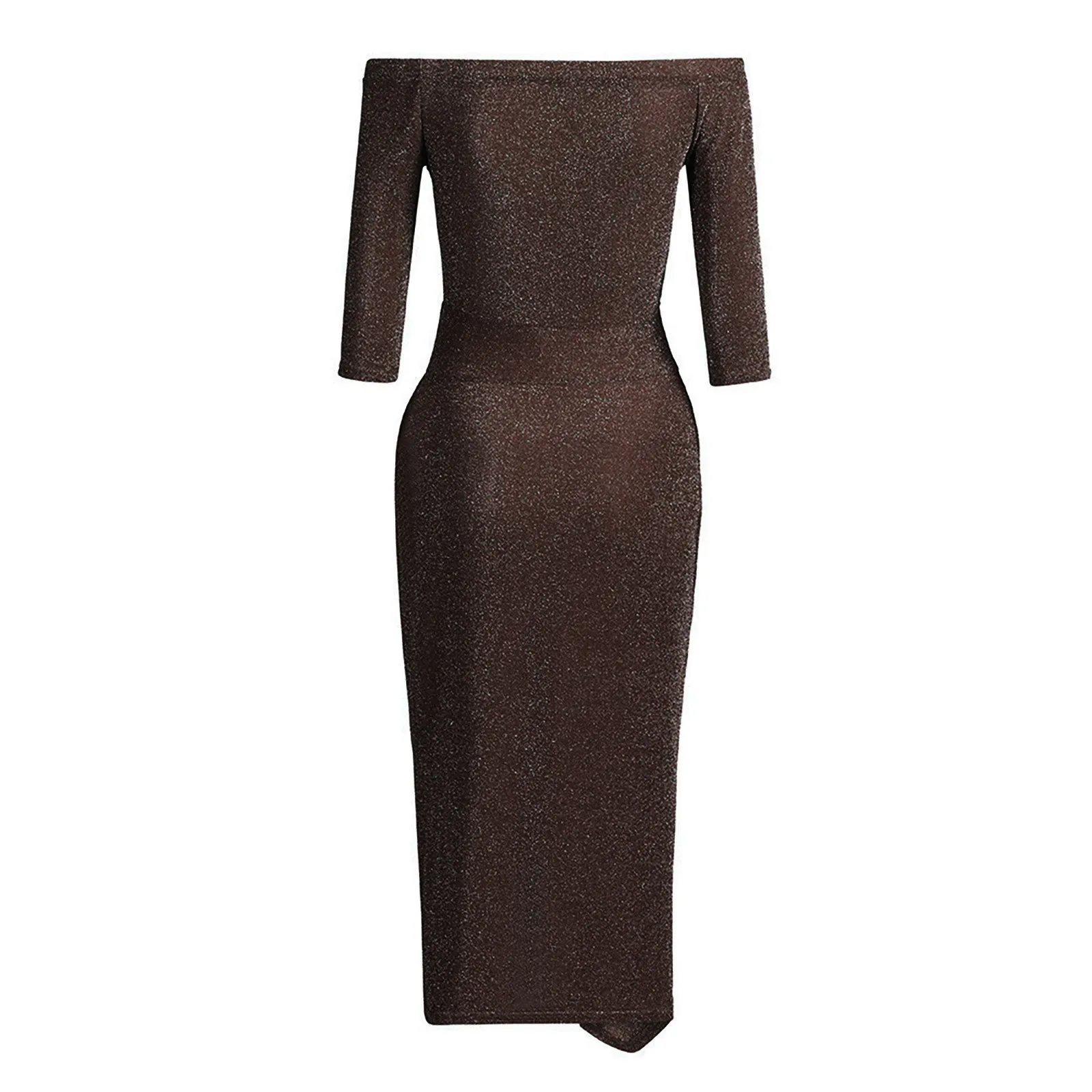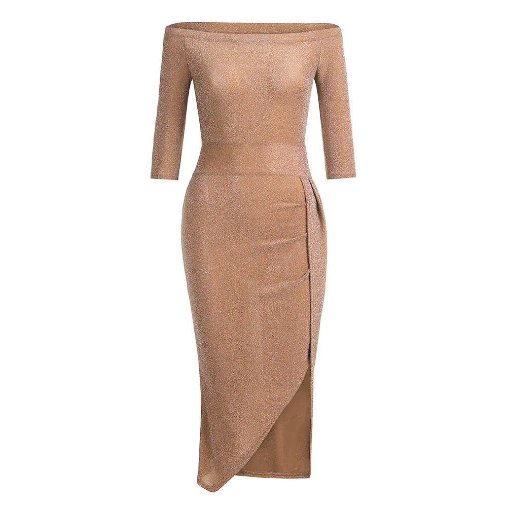 Women's Fashion Sexy Strapless High Slit Tight Dress Long Sleeve Dress
