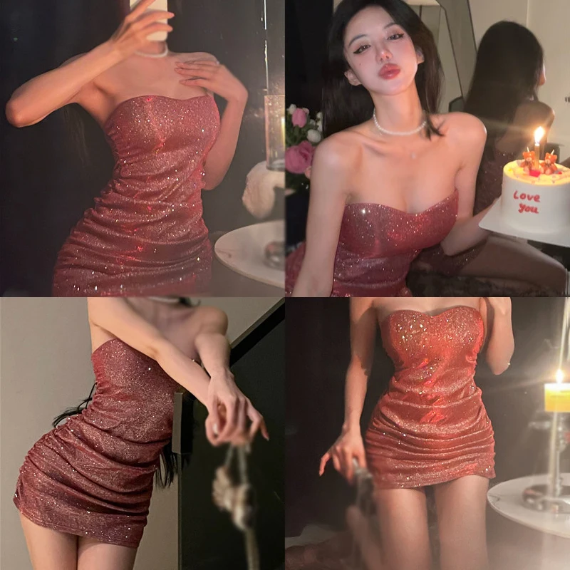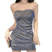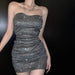 Women's Sequins Bandeau Dress Sexy Pleated Backless with Bra Pads Party Dress Nightclub Bodycon Dress