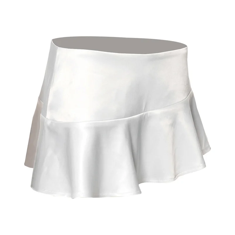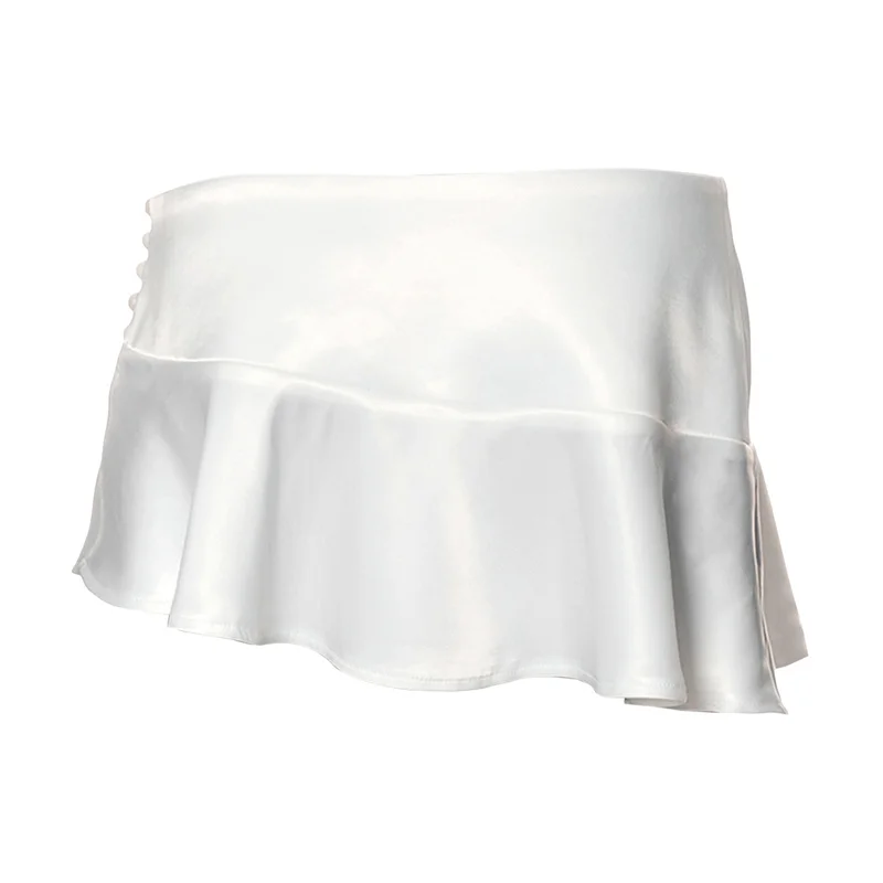 Satin y2k Skirt 2000s Women Solid Color Side Button Low Waist Asymmetrical Ruffle Skirts Fairycore Skirt Streetwear