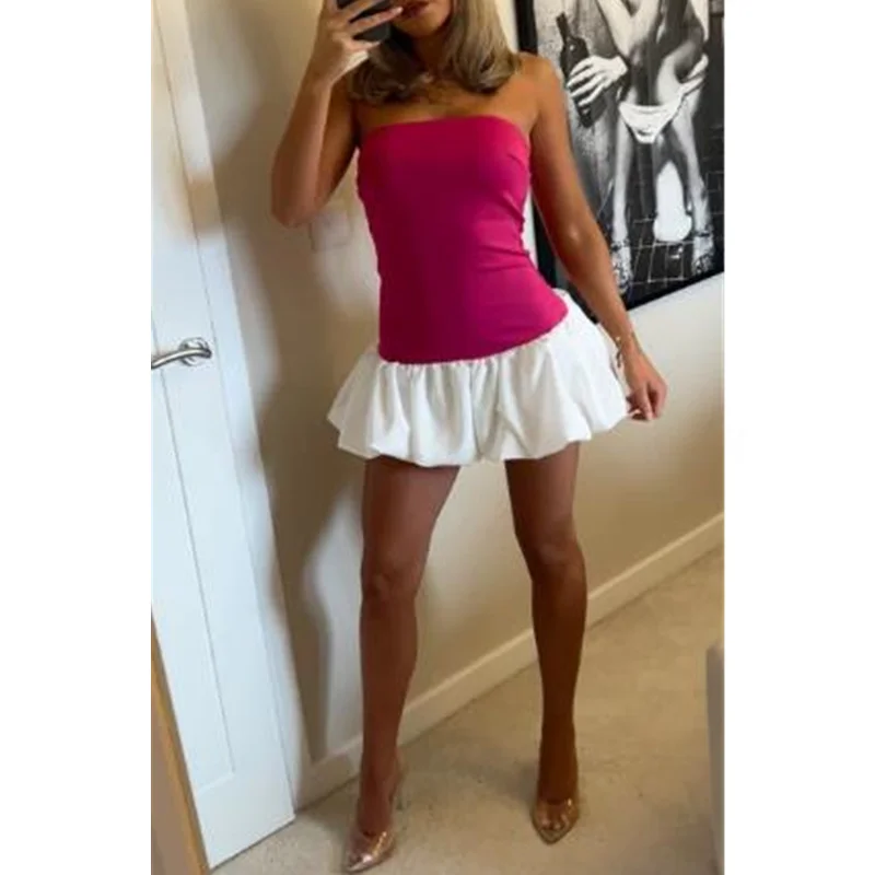 Strapless Mini Dress Women Sexy Solid Color Off Shoulder Puff Bubble Bud Dress Cocktail Beach Party Dresses Streetwear