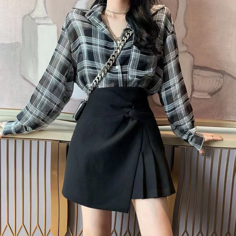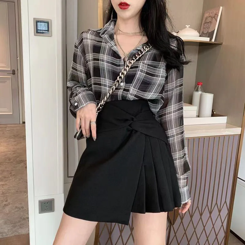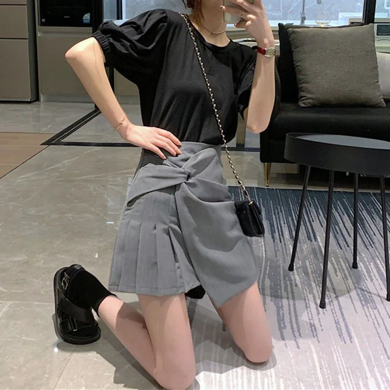 Pleated Skirt for Women Summer 2024 New Elegant High-Waisted A-Line Skirts Female Fashion Street Irregular Bodycon Skirts