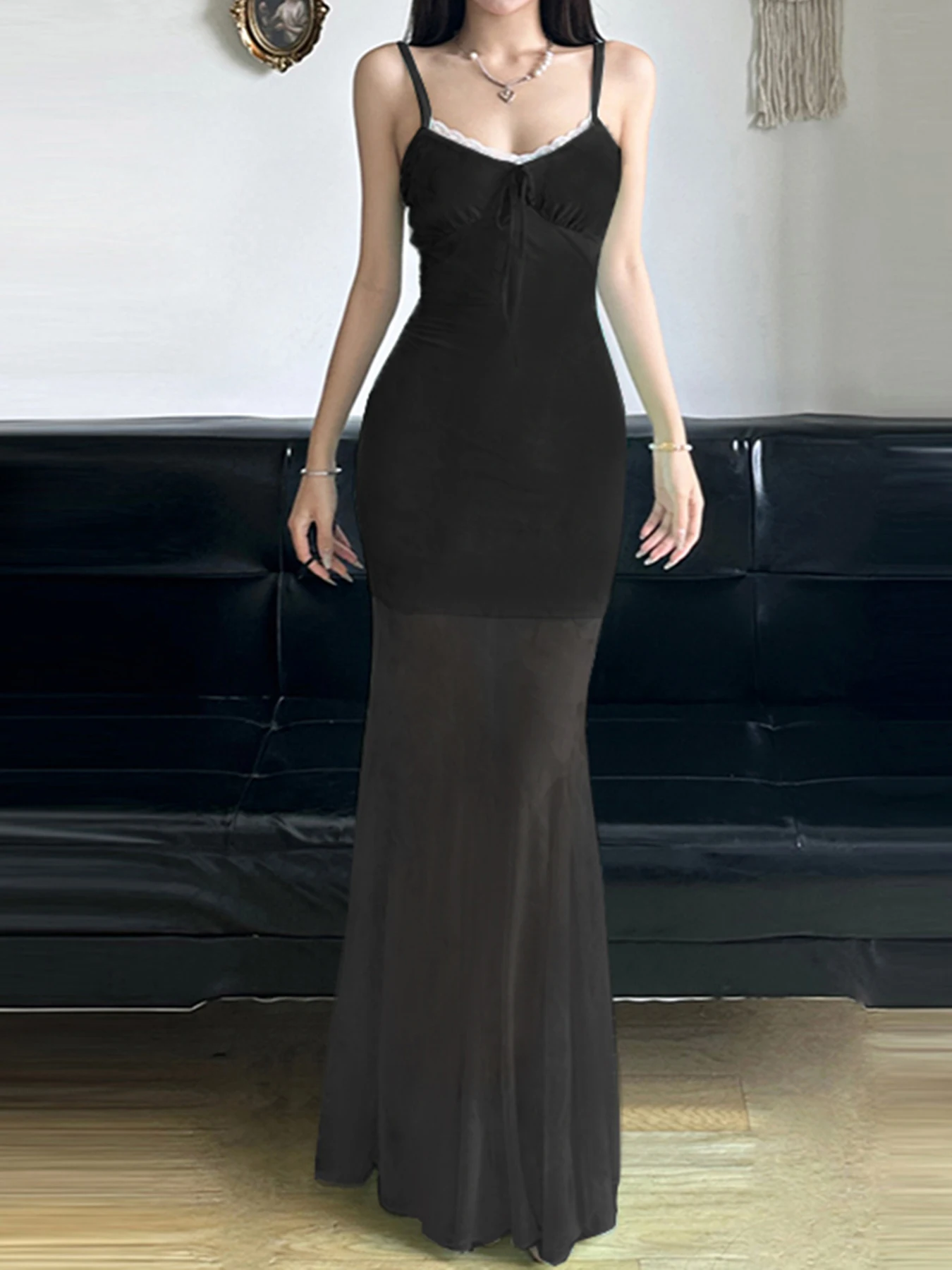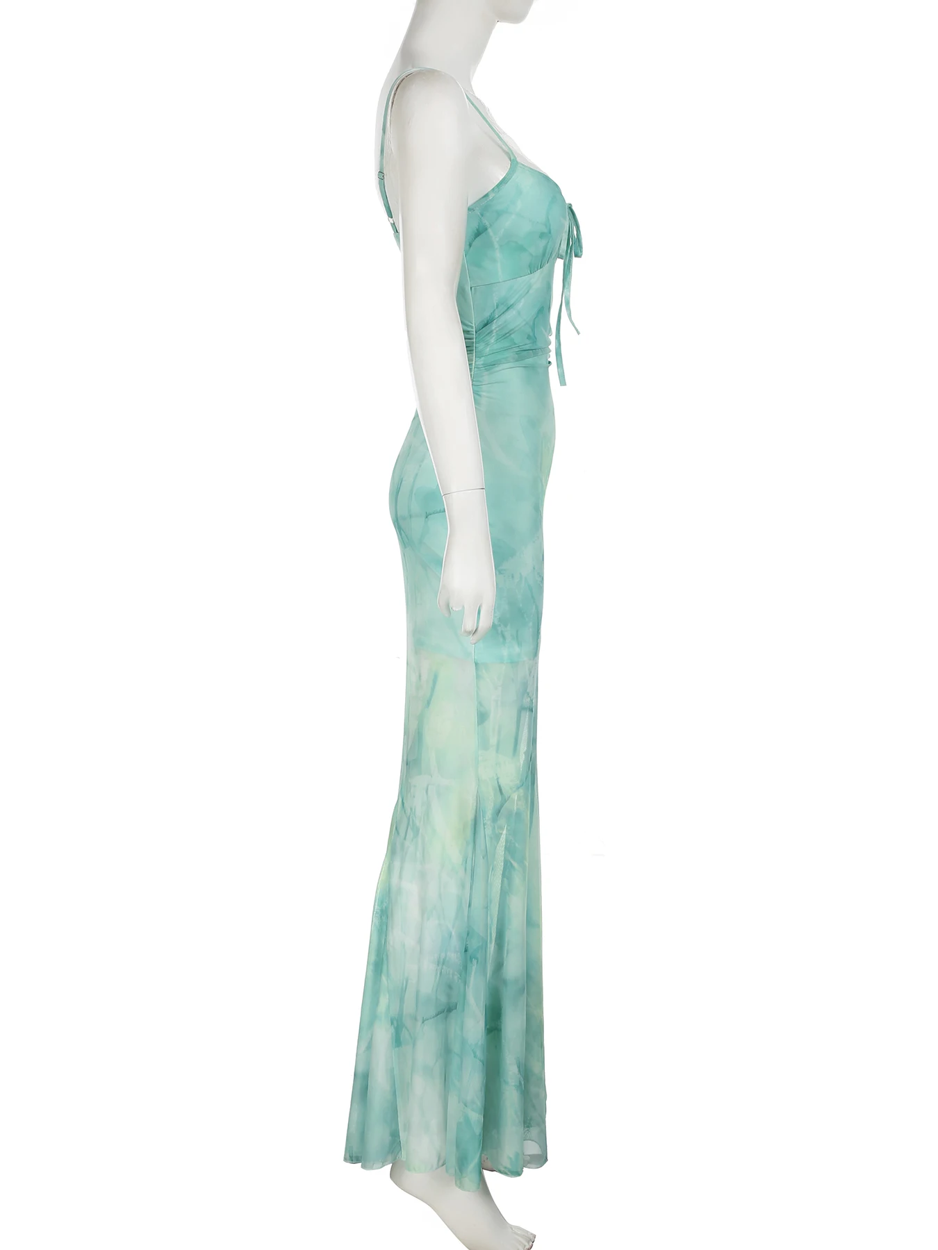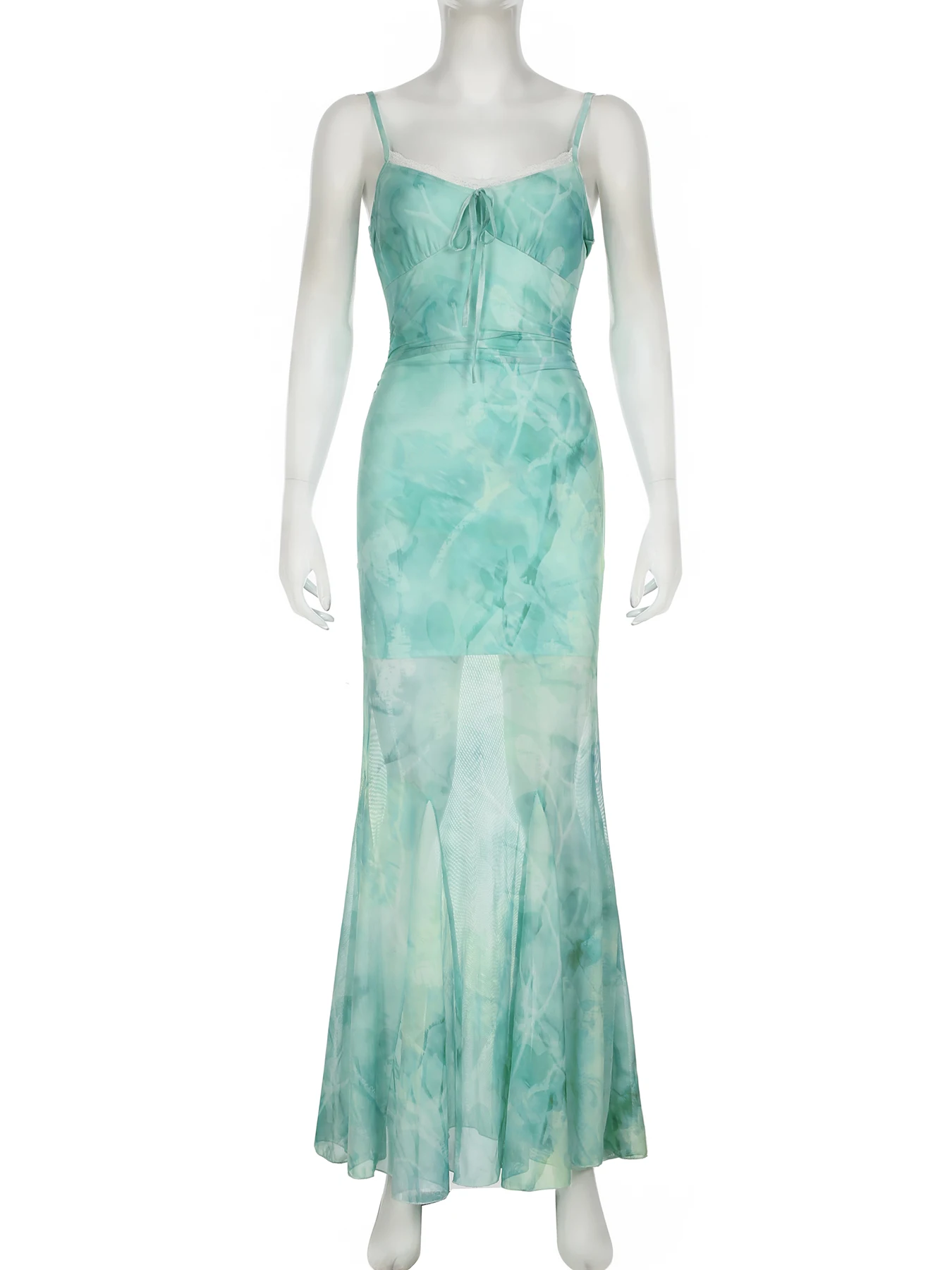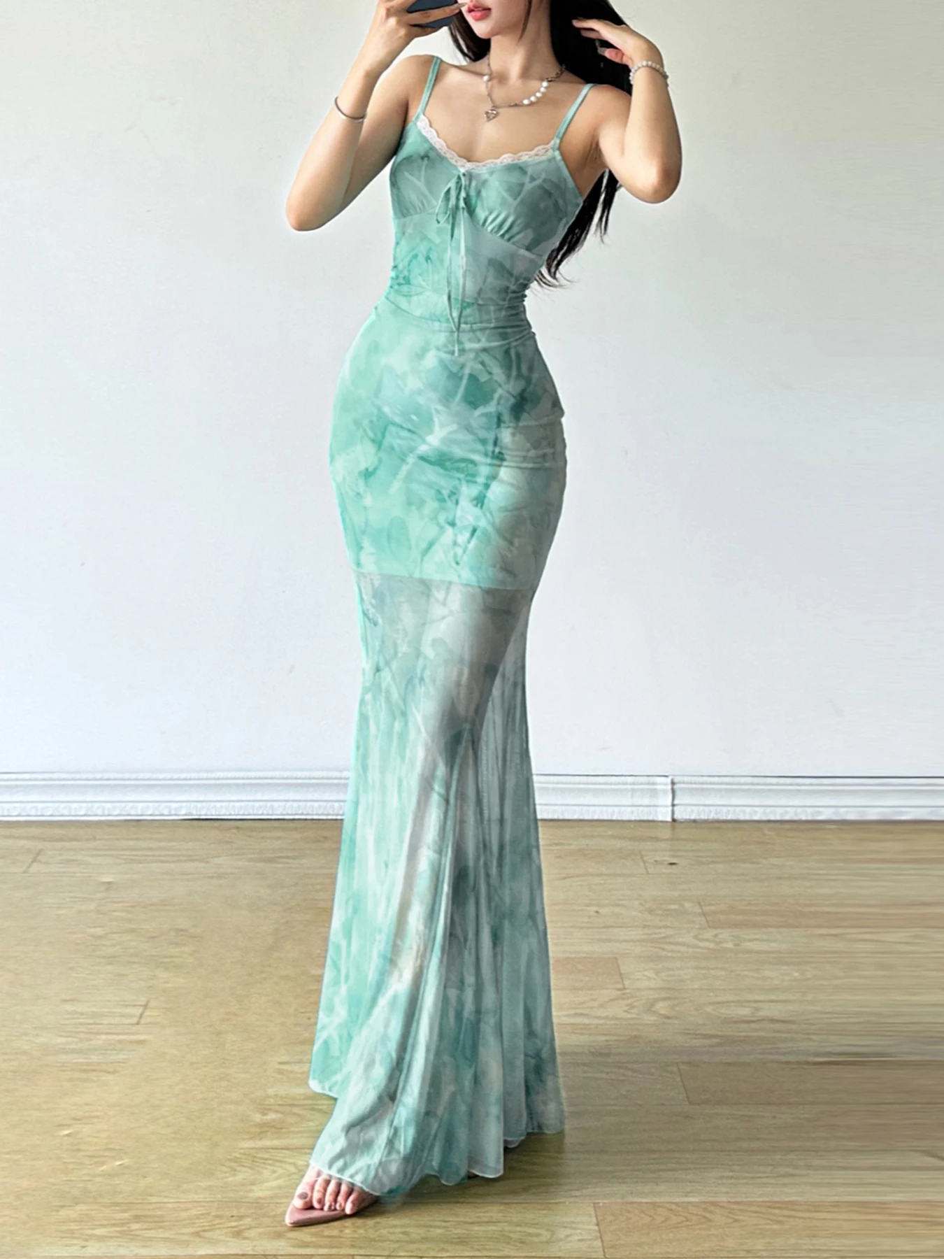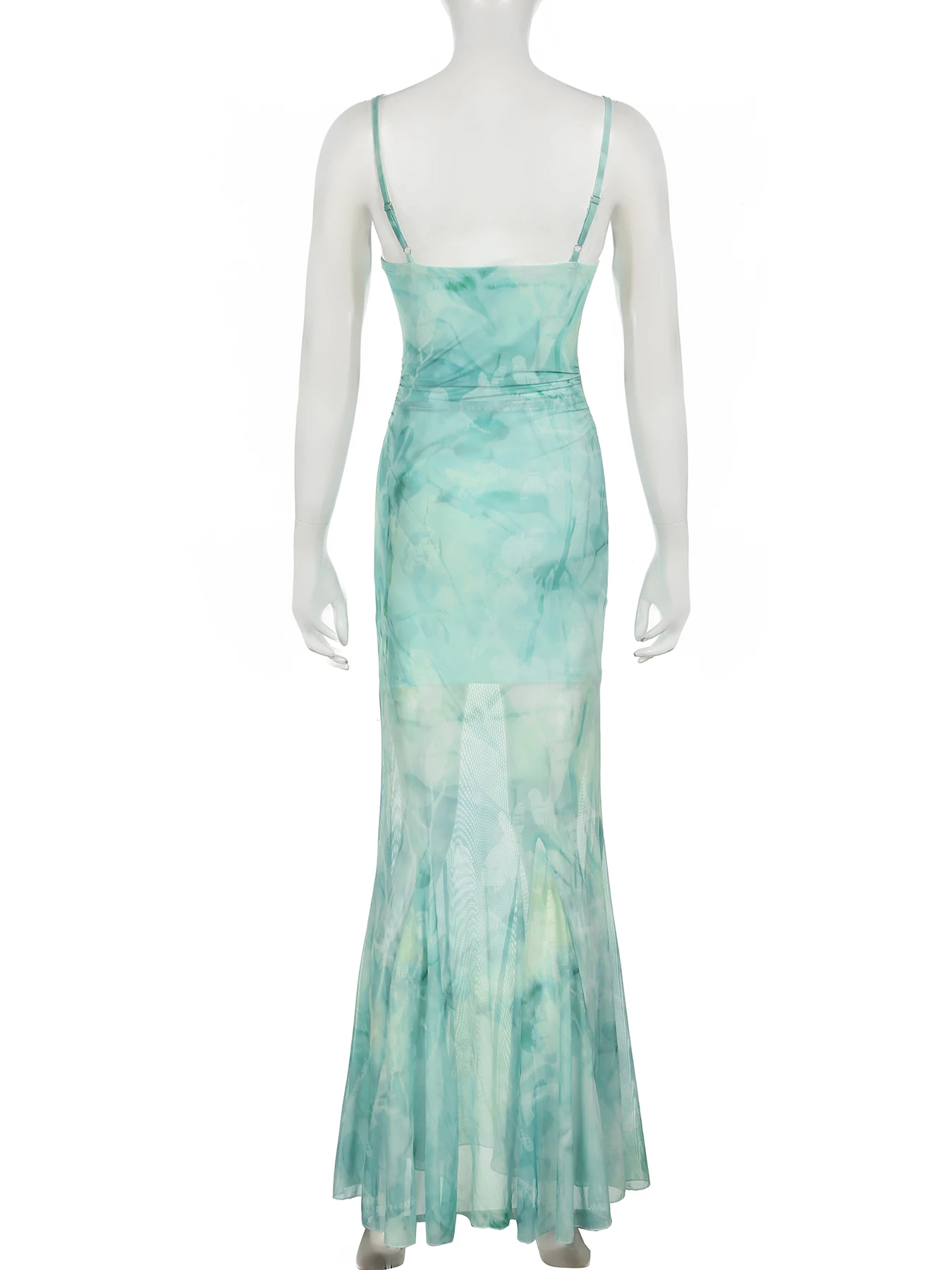 Y2K Mesh Printed Long Evening Dress Fashion Backless Fishtail Dresses One-piece Pretty Elegant Party Gown New in Dress