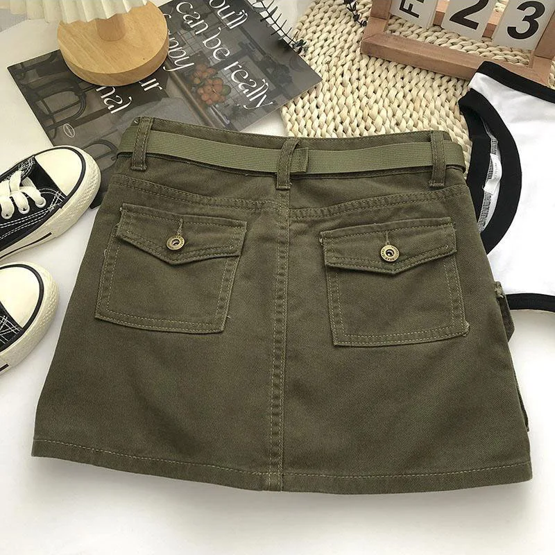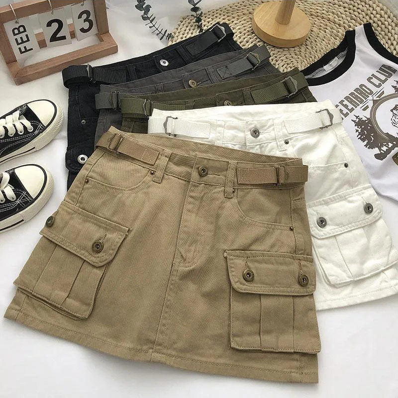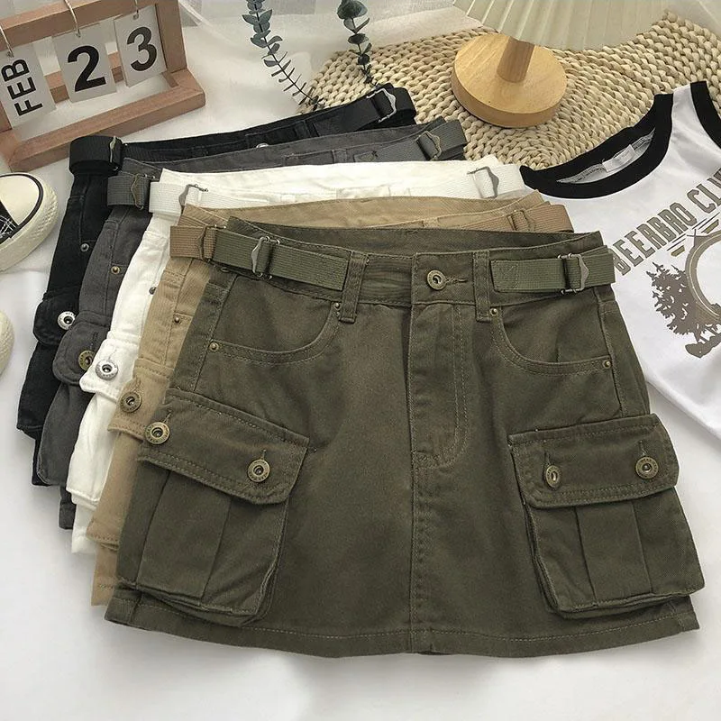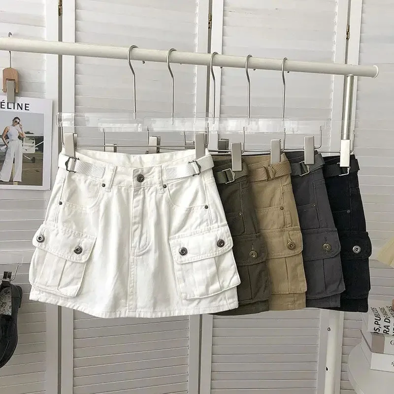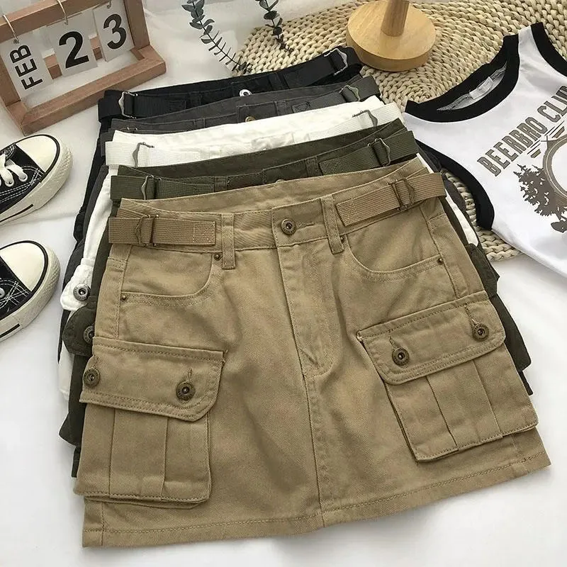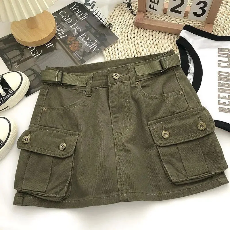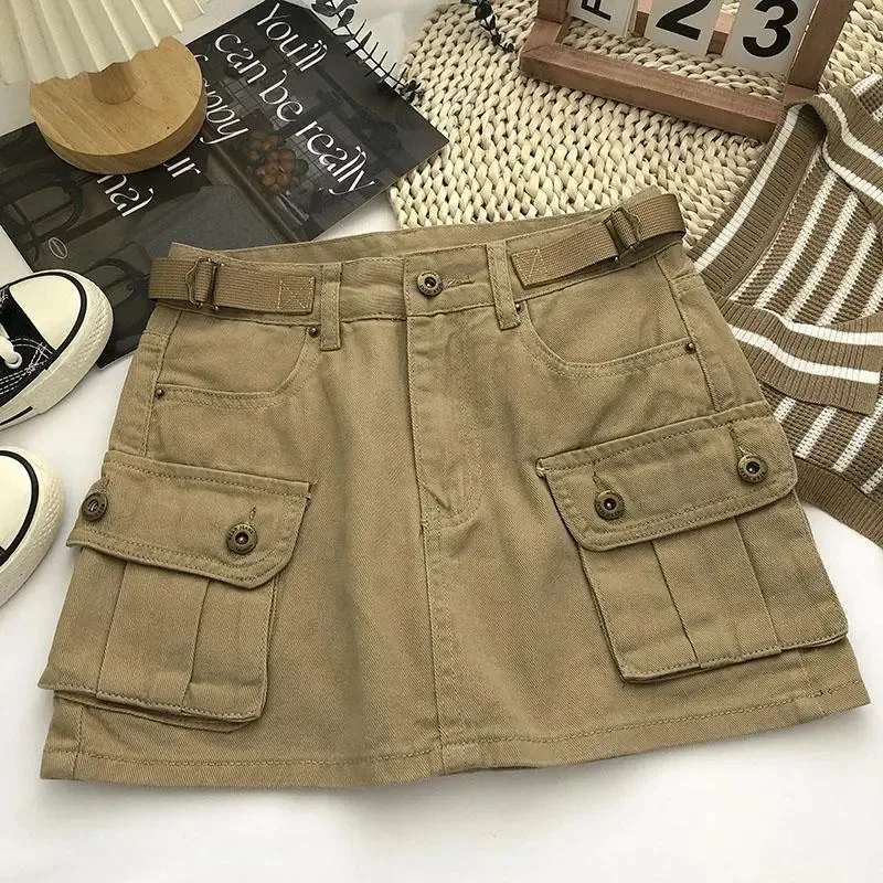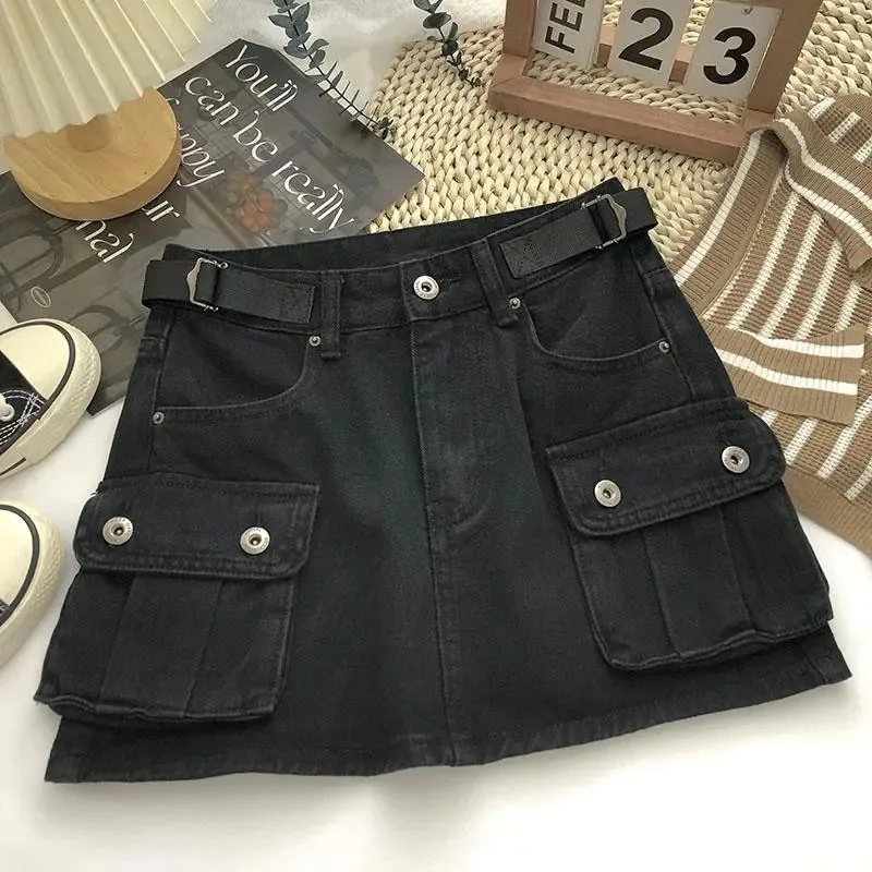 Y2K Vintage Denim Skirts for Women High Waist Korean Slim Pocket Cargo Skirts Ladies Streetwear Solid Sexy Slim Mini Skirts