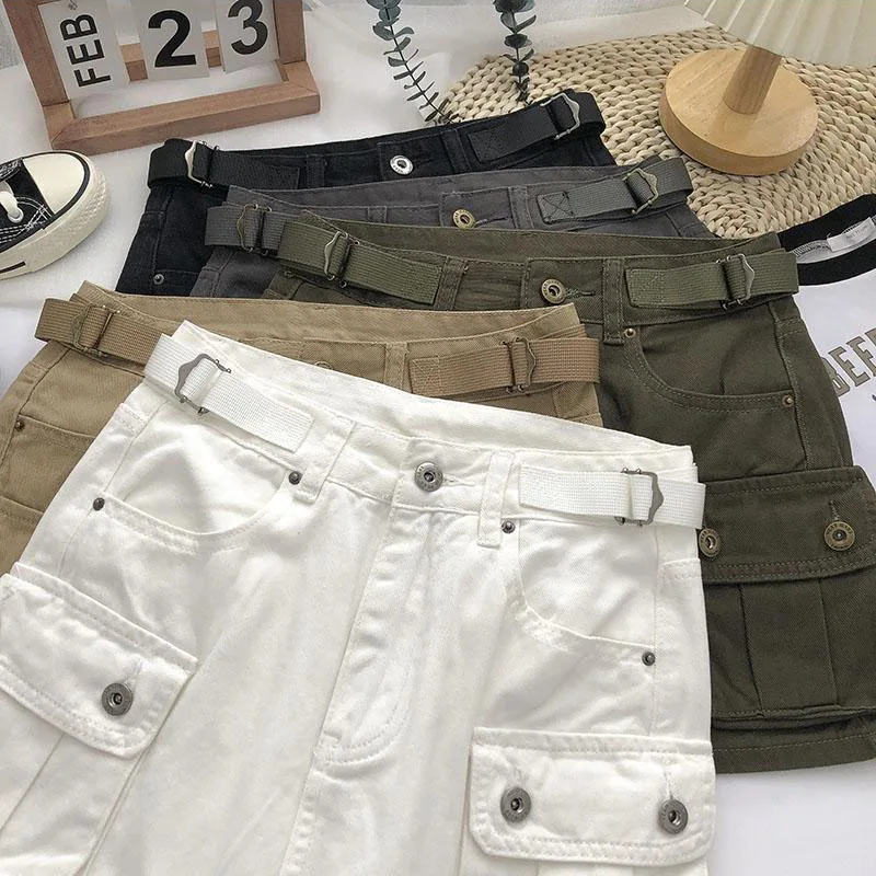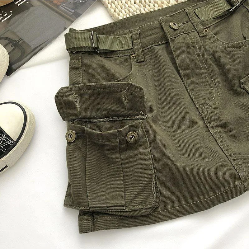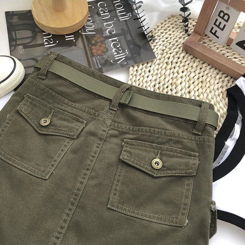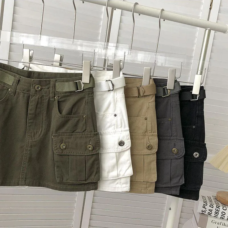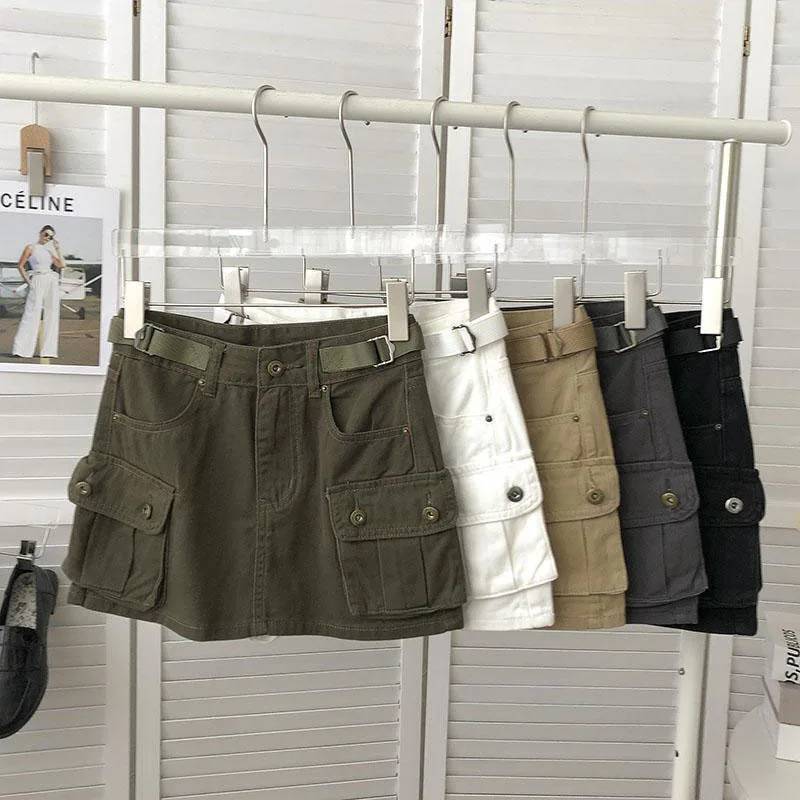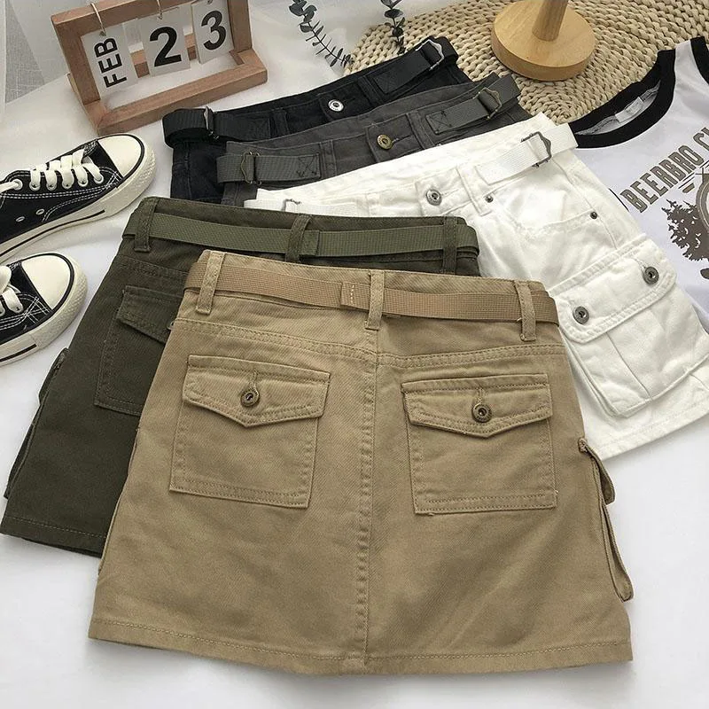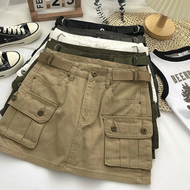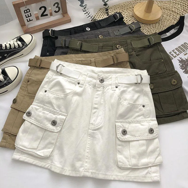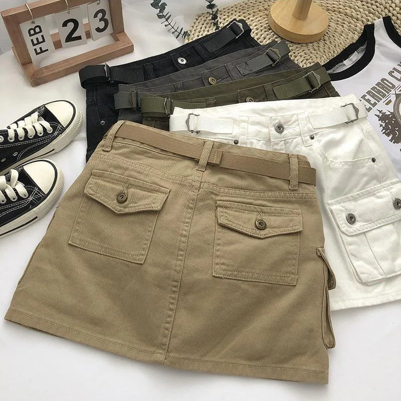 Y2K Vintage Denim Skirts for Women High Waist Korean Slim Pocket Cargo Skirts Ladies Streetwear Solid Sexy Slim Mini Skirts