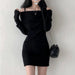 Y2K Women Knitted Mini Dress Korean Sexy Off Shoulder Female Dress Spring New Spaghetti Strap Long Sleeve Ladies Vestidos