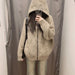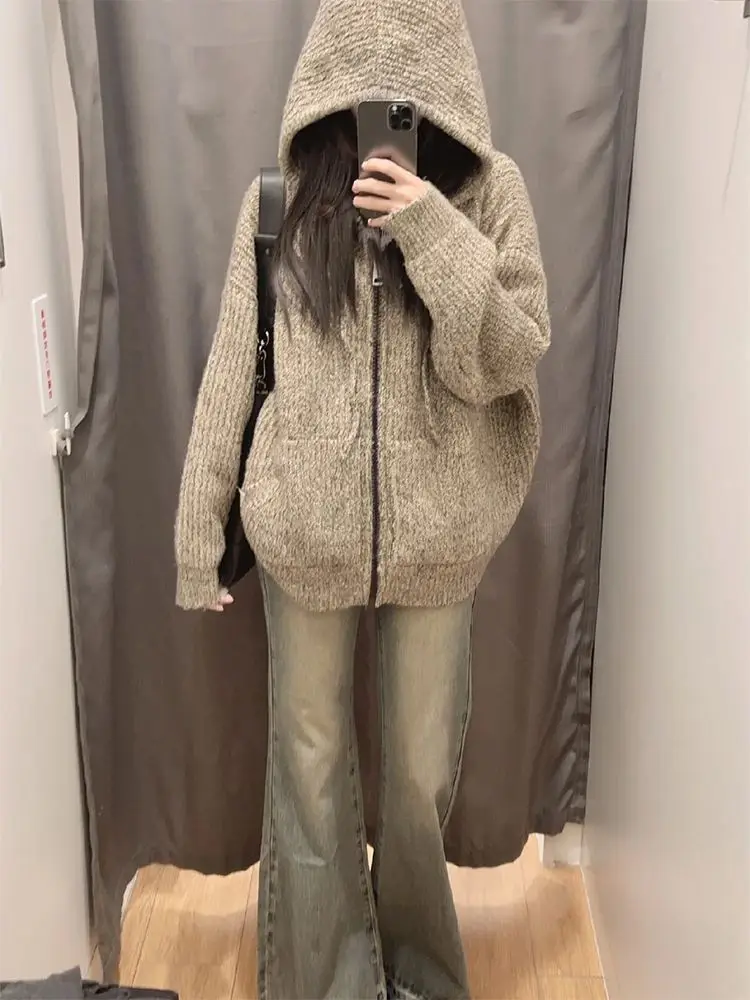 Zipper Hooded Knitted Cardigan Women Harajuku Vintage Knitwear Preppy Style Solid Casual Warm Sweaters Coat Oversize